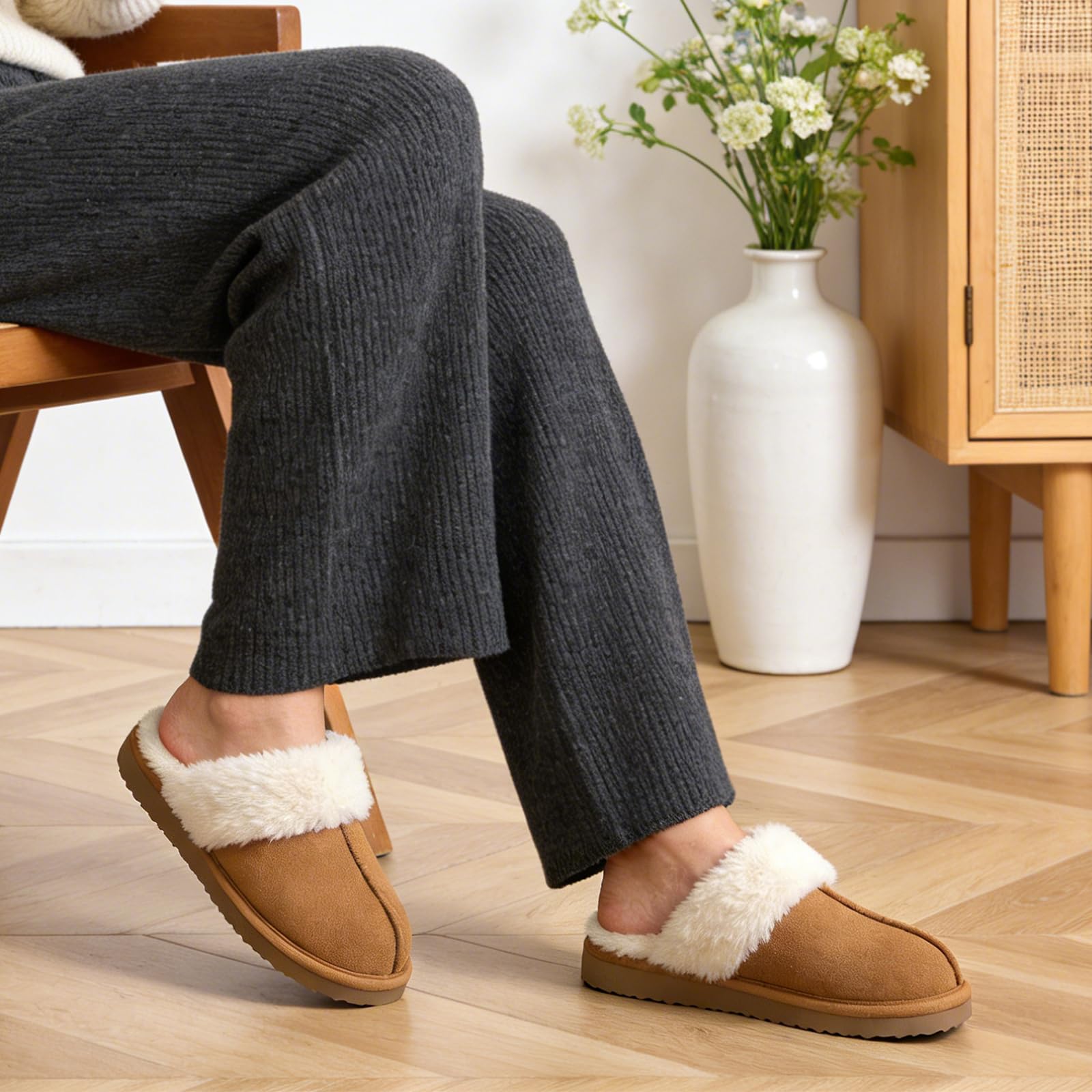 𝗪𝗮𝗿𝗺 & 𝗖𝗼𝗺𝗳𝘆: Inside the fuzzy slippers is a wool like faux fur lining and super soft coral fleece, while also featuring breathable suede and a plush collar to help your feet stay toasty and comfortable all day long