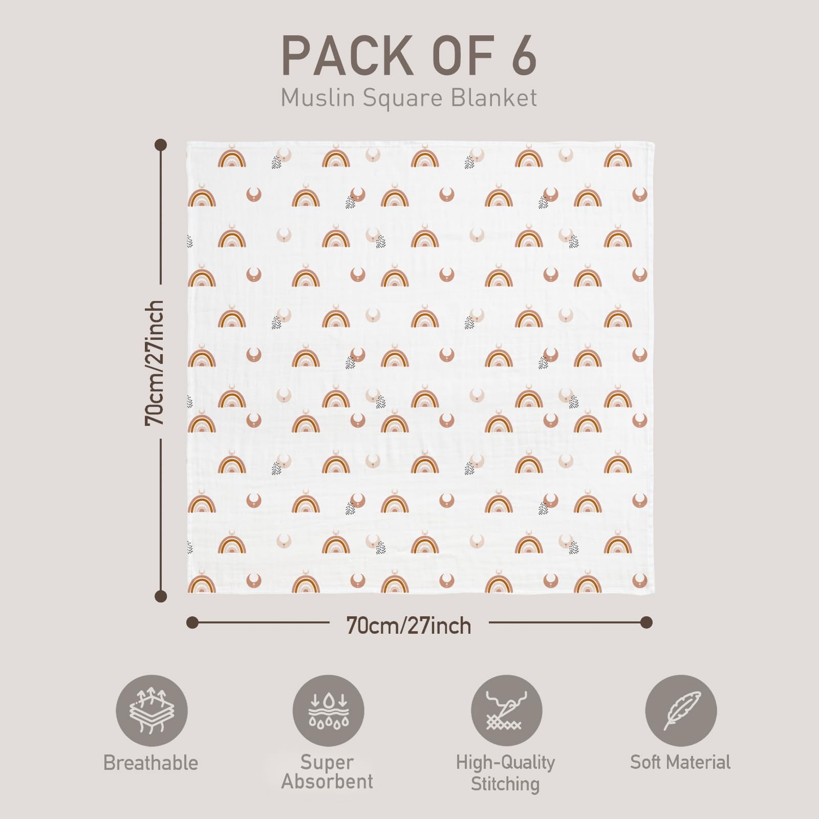 GLLQUEN BABY Receiving Blanket Boy Cotton Muslin Swaddle Blankets Girl Newborn Squares Breathable & Soft Thin Baby Blankets Cloths Double Absorbent Infant Swaddling Wrap - 6 Pack (Sun)