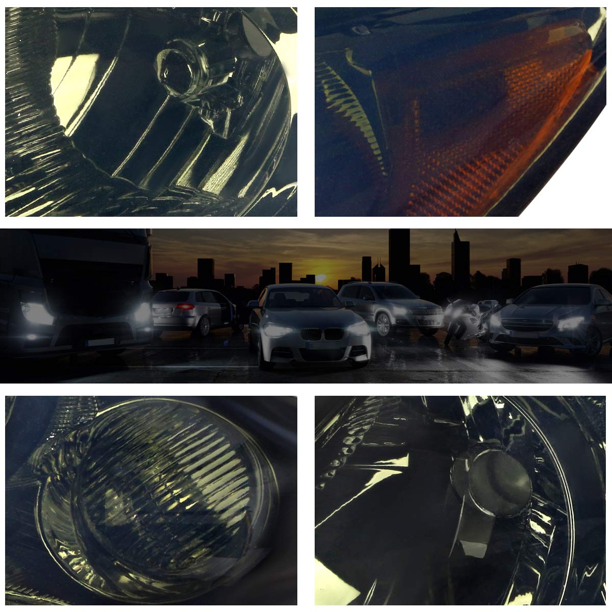 [Package Includes] Pair of Chrome Housing Smoked Lens Headlights for Driver and Passenger Side; Bulb Model: 9004 High Beam / Low Beam / 3157 Signal