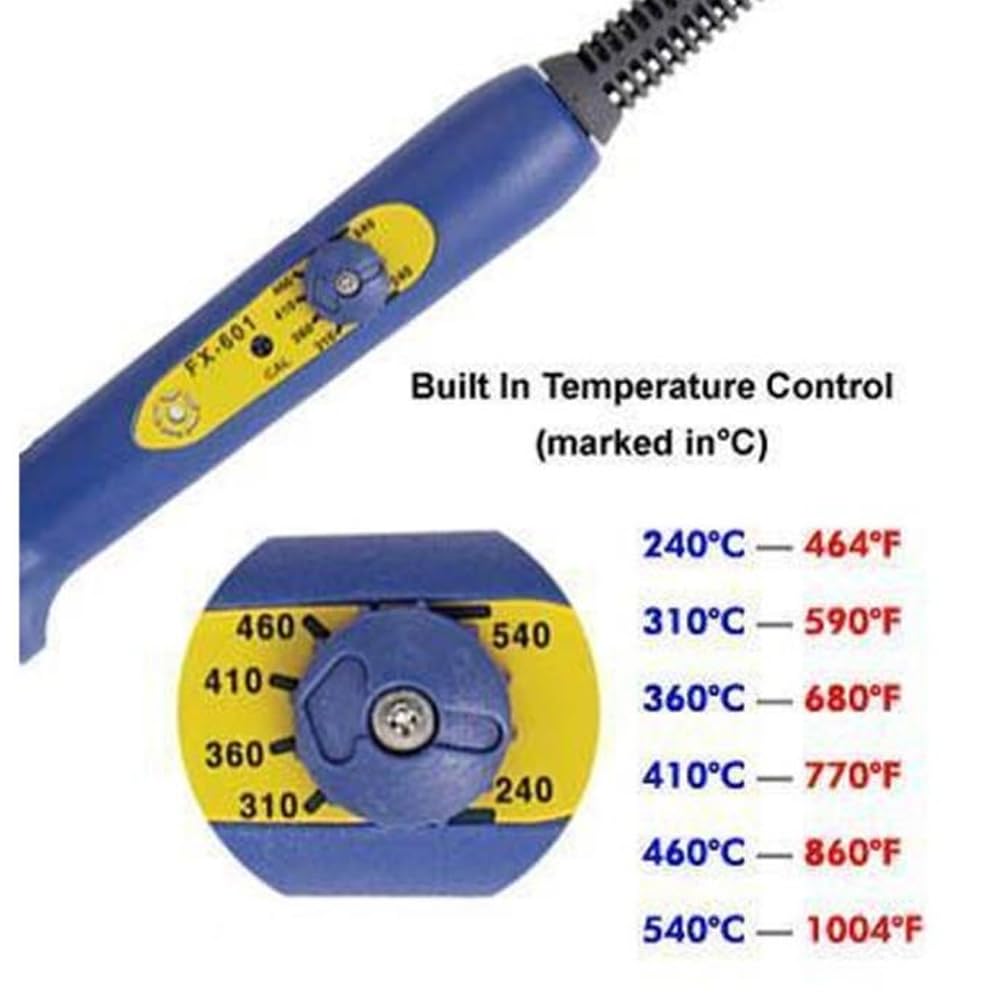 Built-in adjustable Temperature Control on the handle. No need for a rheostat!