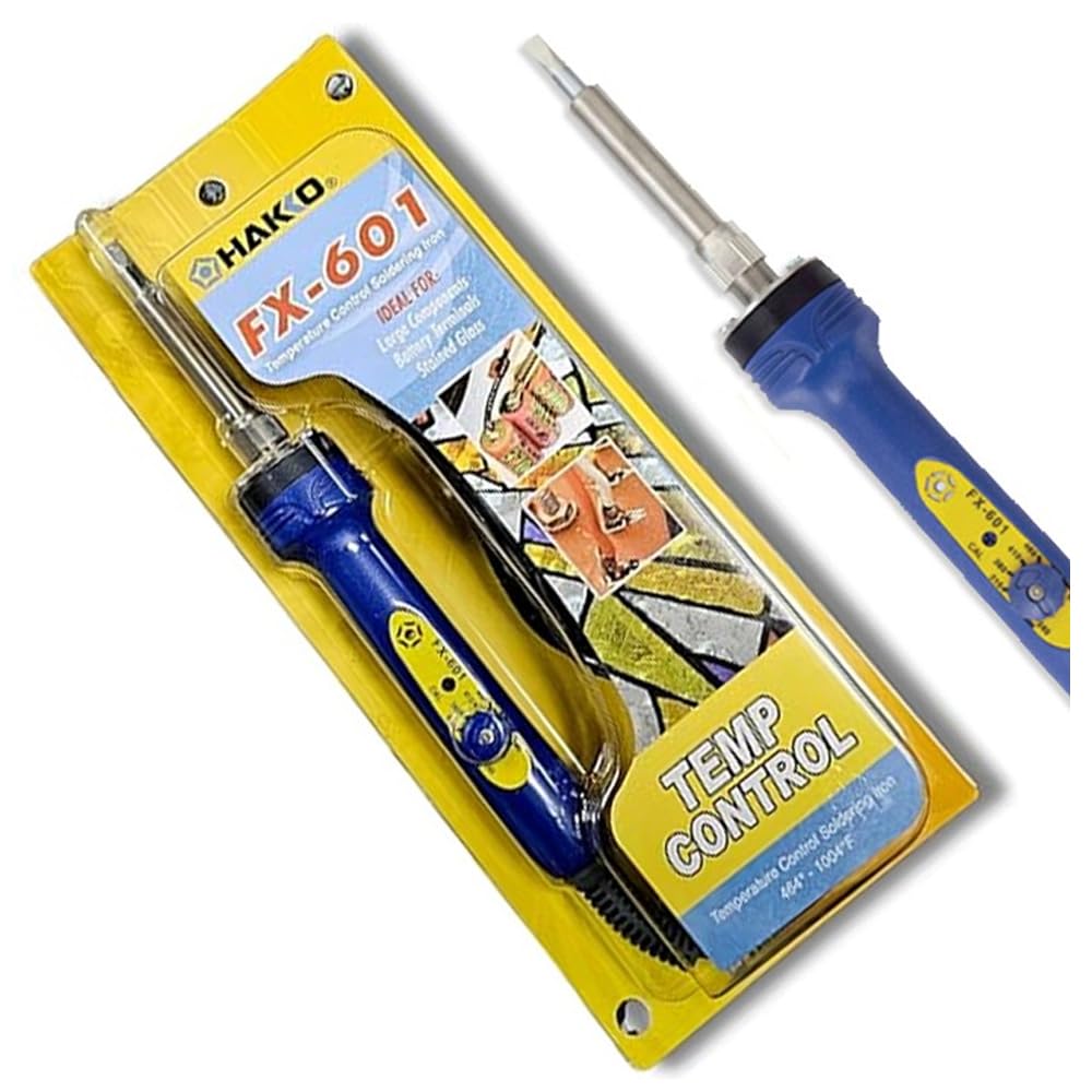 Whether soldering sun catchers or huge installations, this soldering iron is a must for your soldering needs. This ergonomic, lightweight iron features a built-in adjustable temperature control on the handle. No need for a rheostat! Designed for extended use without fatigue; select a setting from 464°-1004°F and solder with confidence. Low energy consumption makes this the perfect pick for production work. Includes 3/16" tip.