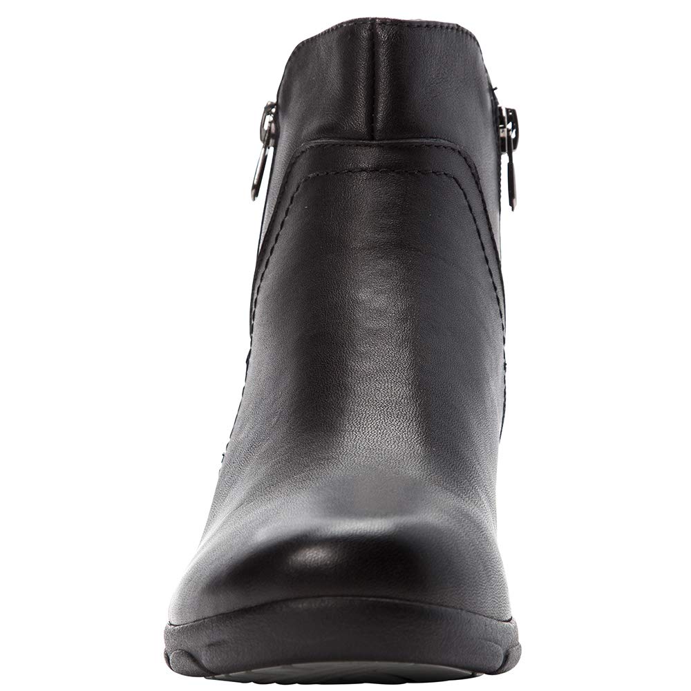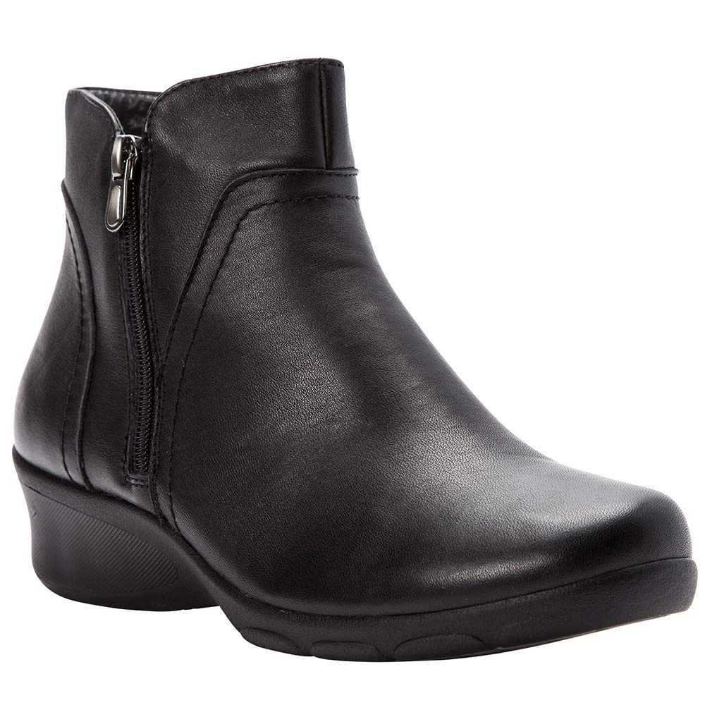 Description Full-grain leather upper bootie and twin zippers for easy entry pu foam insole made with recycled materials and active carbon for anti-bacterial durable wedge pu heel with rubber outsole for traction