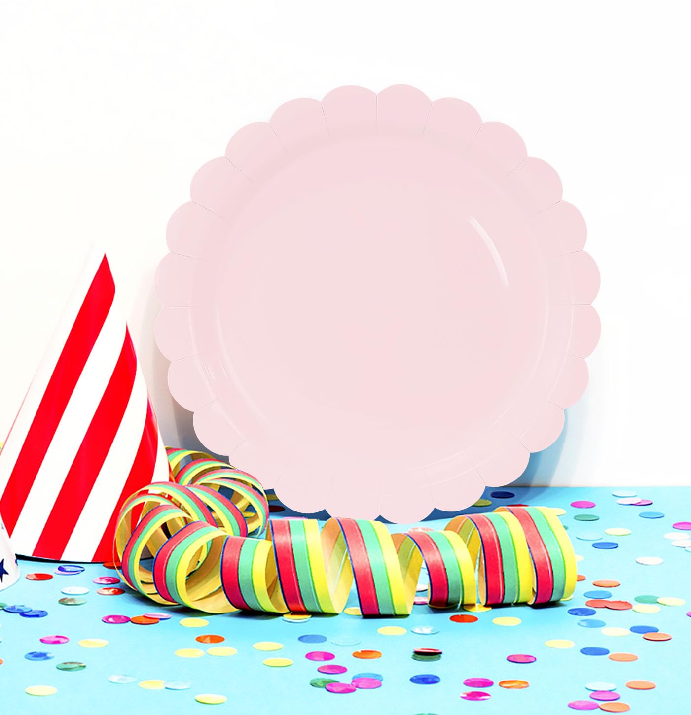 Pink scalloped disposable plates: The scalloped dessert plates are designed in light pink, simple but advanced, which can quickly set off the party atmosphere and add beautiful to mealtime setting, whether it's a casual gathering or a formal dinner party