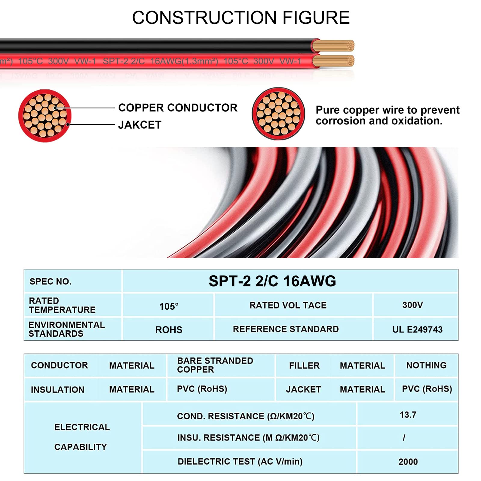 【Cable Spec】12Volt Cigarette Lighter Extension Cord Cable Spec: SPT-2 16AWG(1.31mm²) / 2C, Length: 13.1FT(157.2inches/4m), 100% UL Certified Copper Wire - high conductivity, low resistance and soft, can be bent arbitrarily