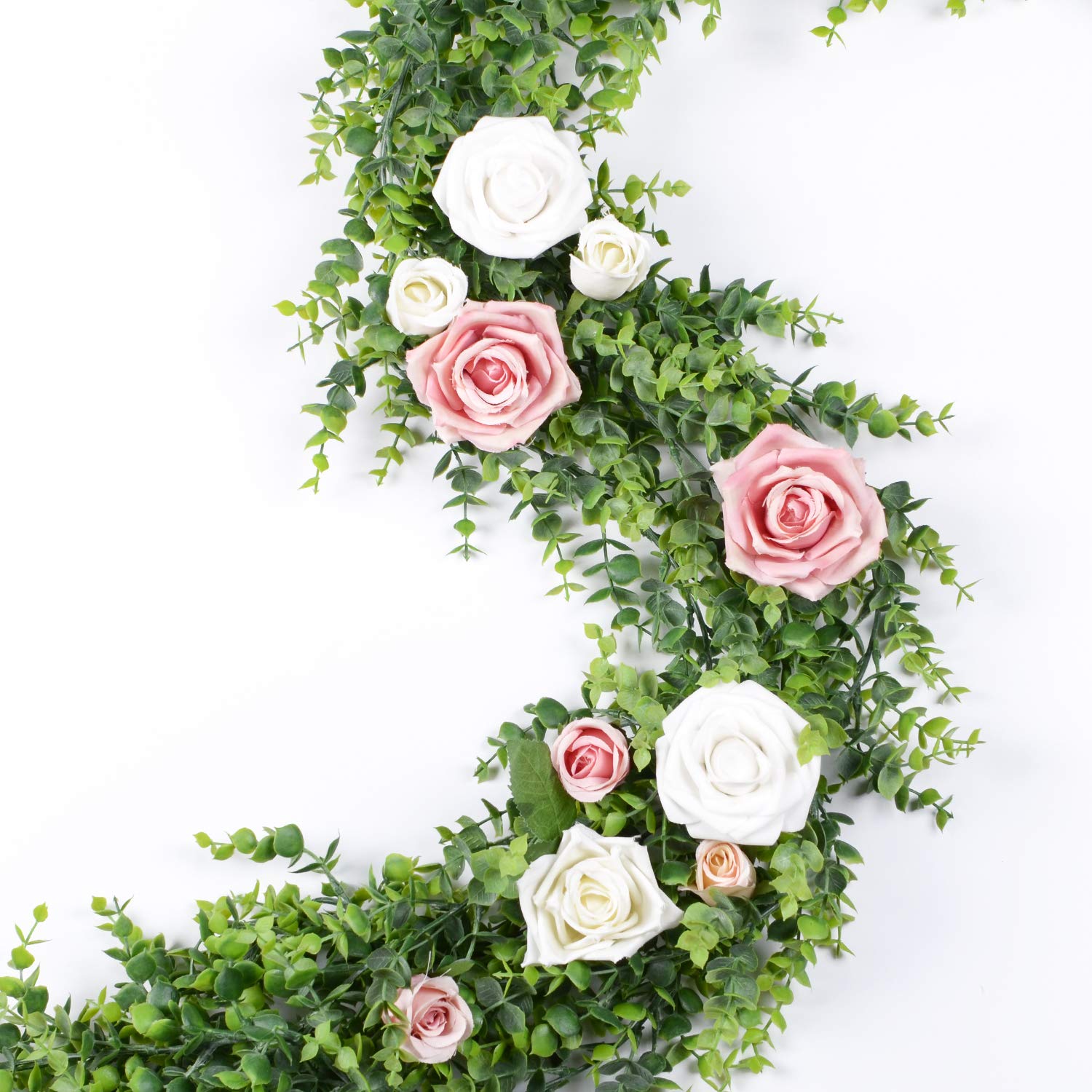 Faux eucalyptus garland is waterproof and outdoor UV resistant. So it can keep a fresh look in outdoor or indoor. Dress up this garland with silk flowers to sit over the edge of a table or sign.