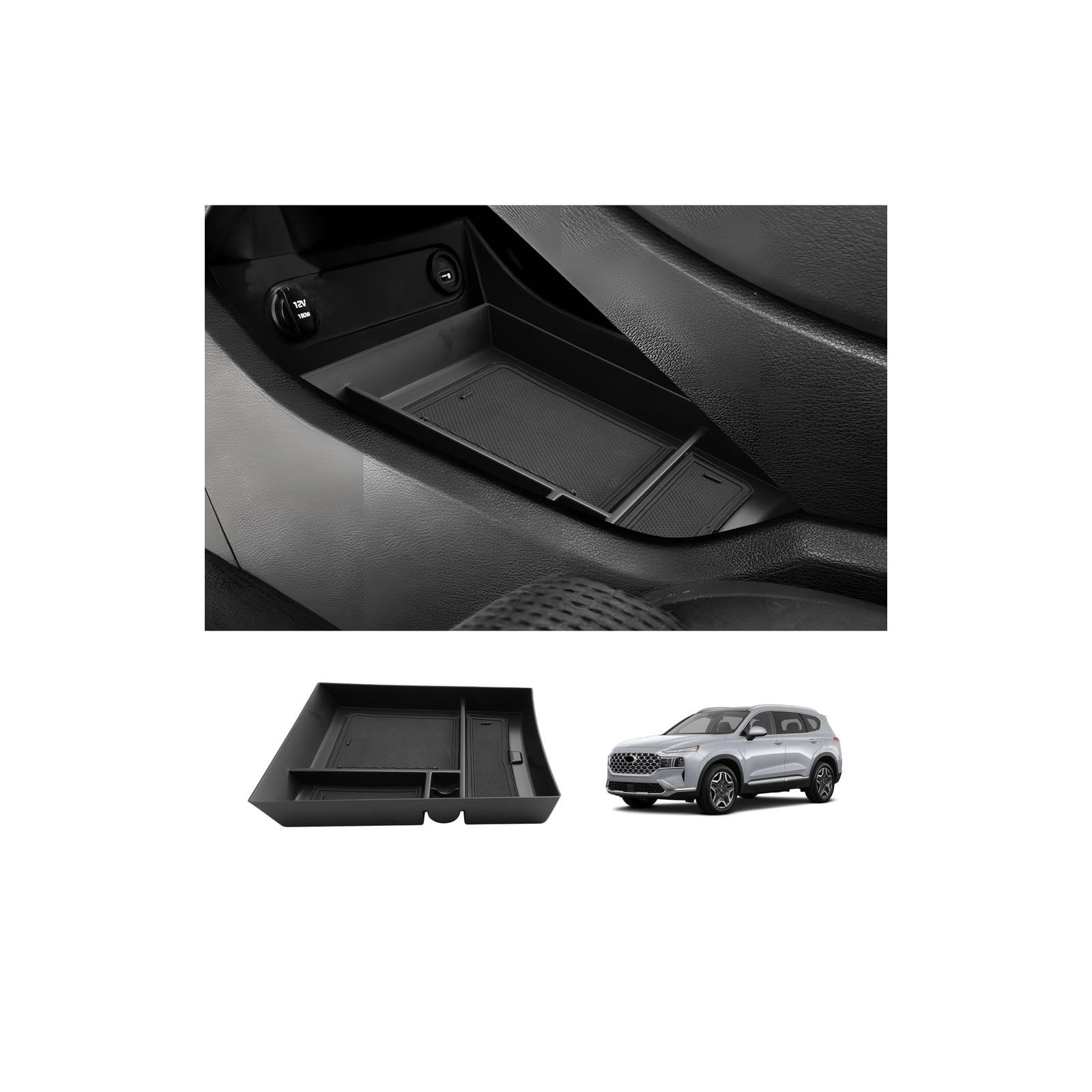 [LUWU for 2021 2022 2023 Santa Fe Armrest Box Santa Fe Center Console Organizer 2021 2022 2023 Santa Fe Accessories] The car center console storage box solves the problem of space storage well, maximizes the storage space of the car center console. Product feature: Material: High quality silicon material Colors: Black/White/Blue/Red Package Contents: 1 x Lower Center Console Tray Apply for: 2021 2022 2023 Santa Fe SE/SEL/XRT/Limited/Calligraphy The armrest box organizer provides a more organized shape in your armrest storage. Transforms the organization way, with several storage compartments, no messy again, so easier to find your everything. Well-made quality organizer, ABS black materials, increases a lot of available space and is clean and tidy. Include the rubber tray bottom liners which should make it easier to clean, avoid sliding and rattling in-tray. (Non-Slip Mats: More durable, more quietly) Easily install and remove, divide the center console from one into two layers, an essential accessory for the car owners. Notice: Before you make the order, make sure that your car is the 2021 2022 2023 Santa Fe Please contact us If you met any problems during use it, we will reply to you the first time.