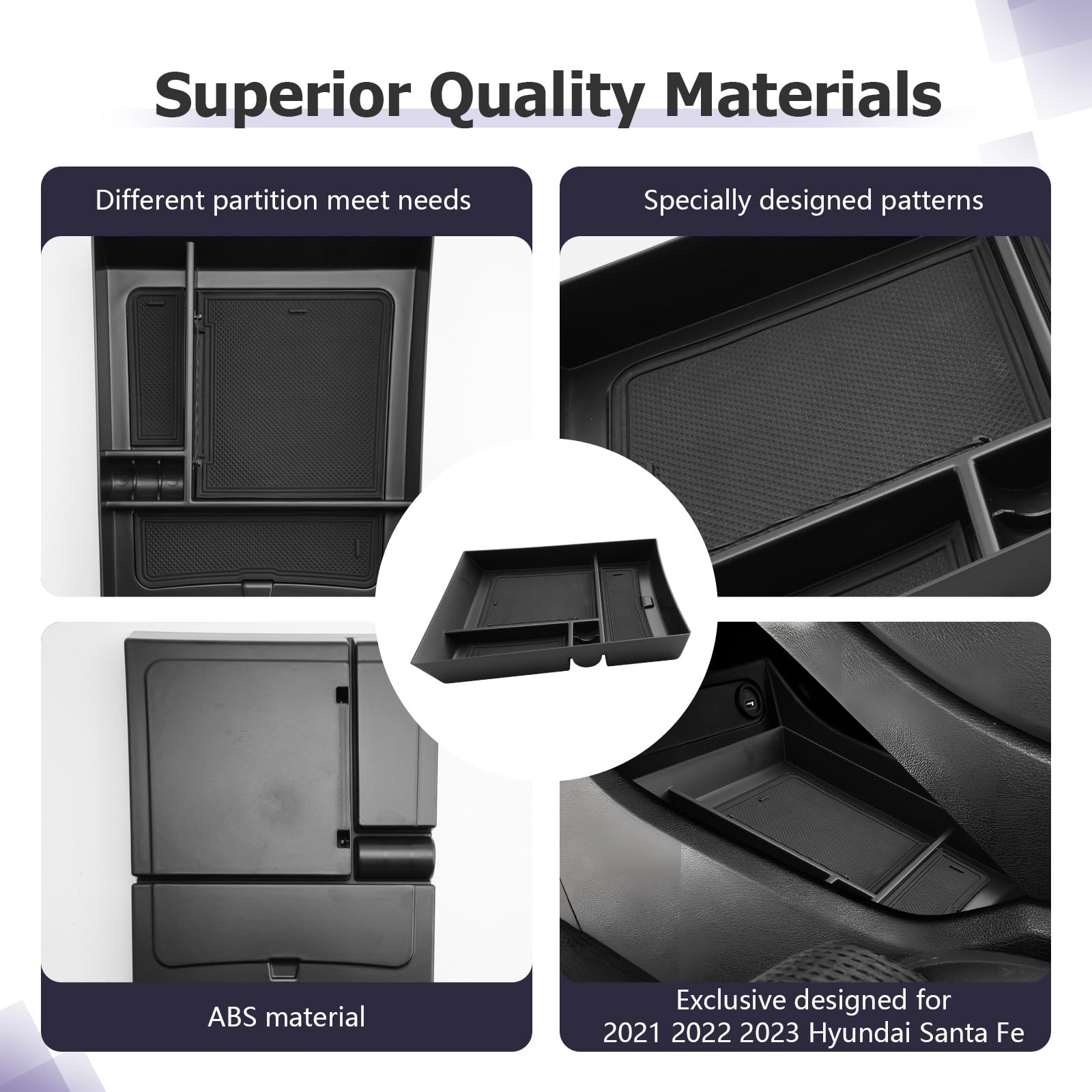 Durable & High-Quality Materials — This Santa Fe accessories,Santa Fe 2023 accessories,2023 Santa Fe armrest storage box is made of ABS material. Santa Fe center console organizer is very strong and can be a good independent armrest box while you are driving. Santa Fe accessories 2023 is also moisture-proof and resistant. Corrosion and durability
