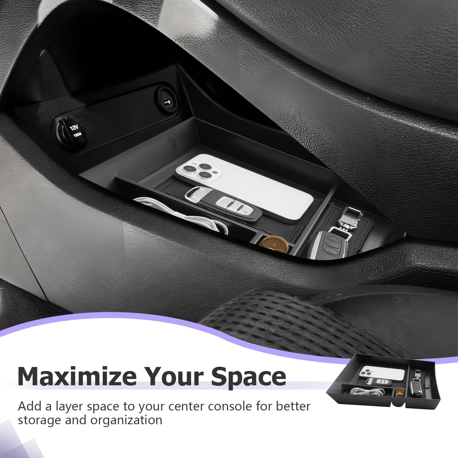 Maximize Your Space — organizer for Santa Fe console,2023 Santa Fe accessories, Santa Fe glove box organizer increase the available space of the center console, you can easily store and access your items, such as pens, coins, keys, wallets, etc., and quickly access items without digging holes. Orderly storage helps your Santa Fe center console get rid of the messy storage environment