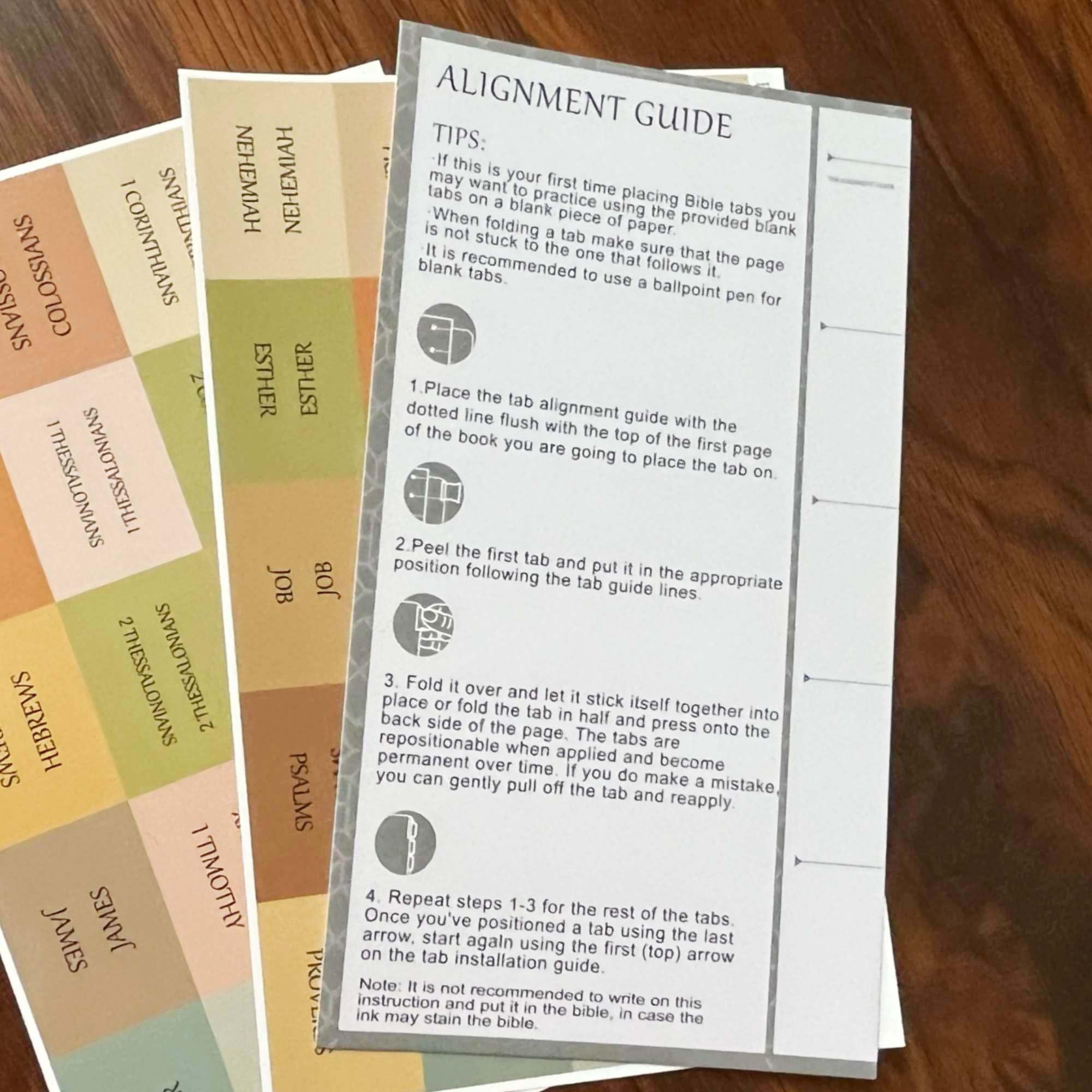 [Easier to Apply & Alignment Guide Included] The self-adhesive bible tabs are perforated in the middle for folding, simply align them with the provided guide or place them creatively in your new Bible.