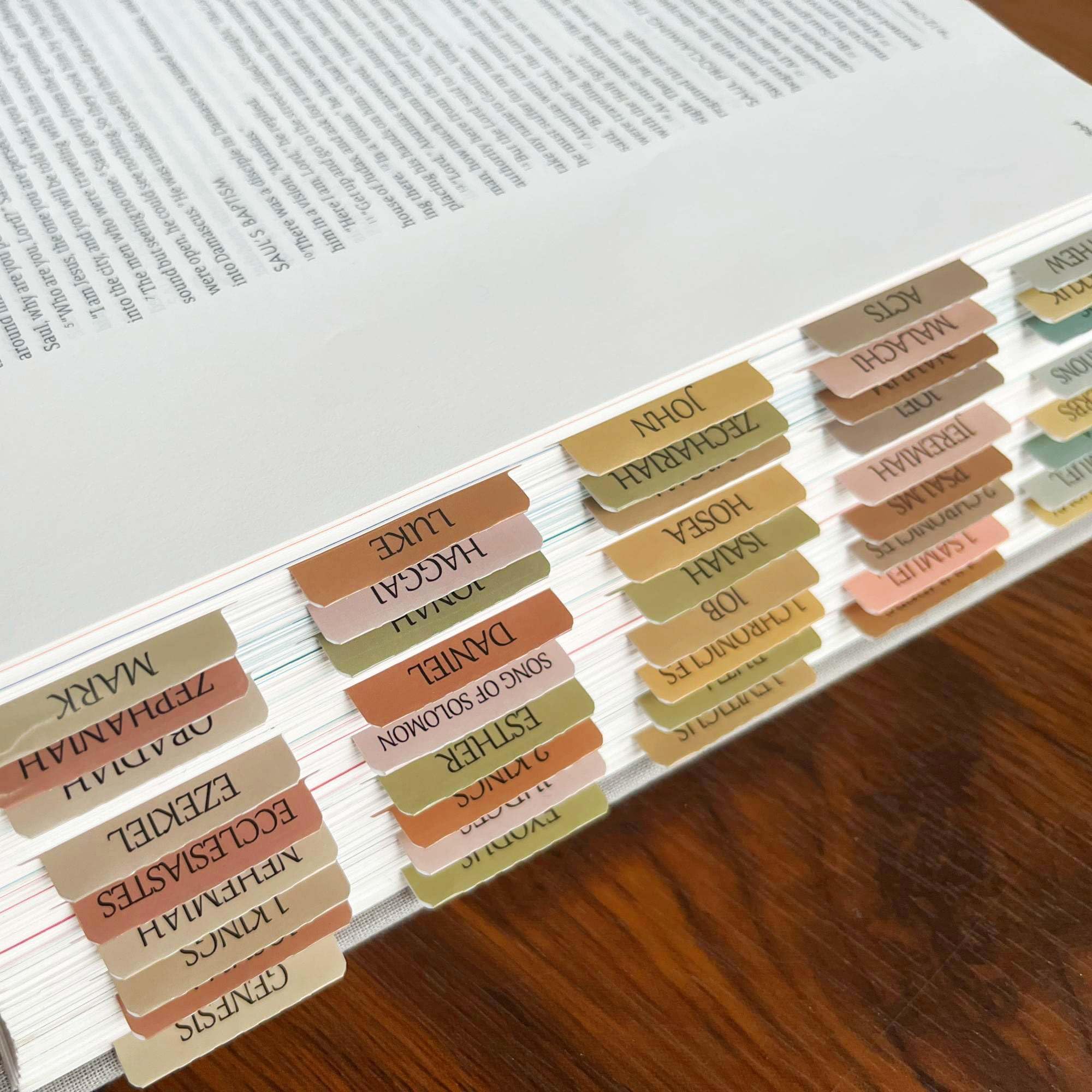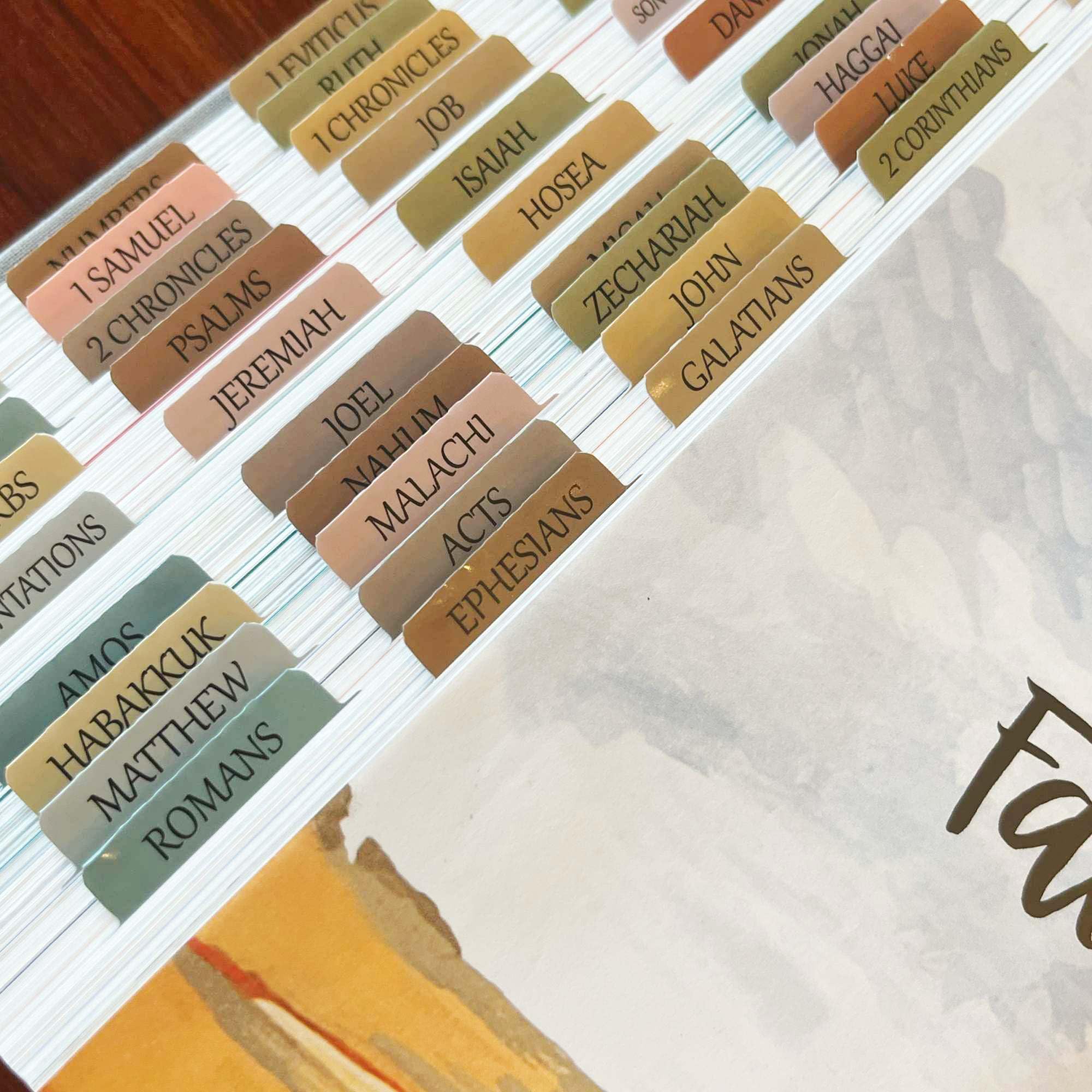 [66+14 Neutral Color Tabs] There are 80 bible index tabs in total, 66 tabs for old and new testament, 14 empty book tabs with unique design, which can be personalized or used to index the books in the Catholic Bible.