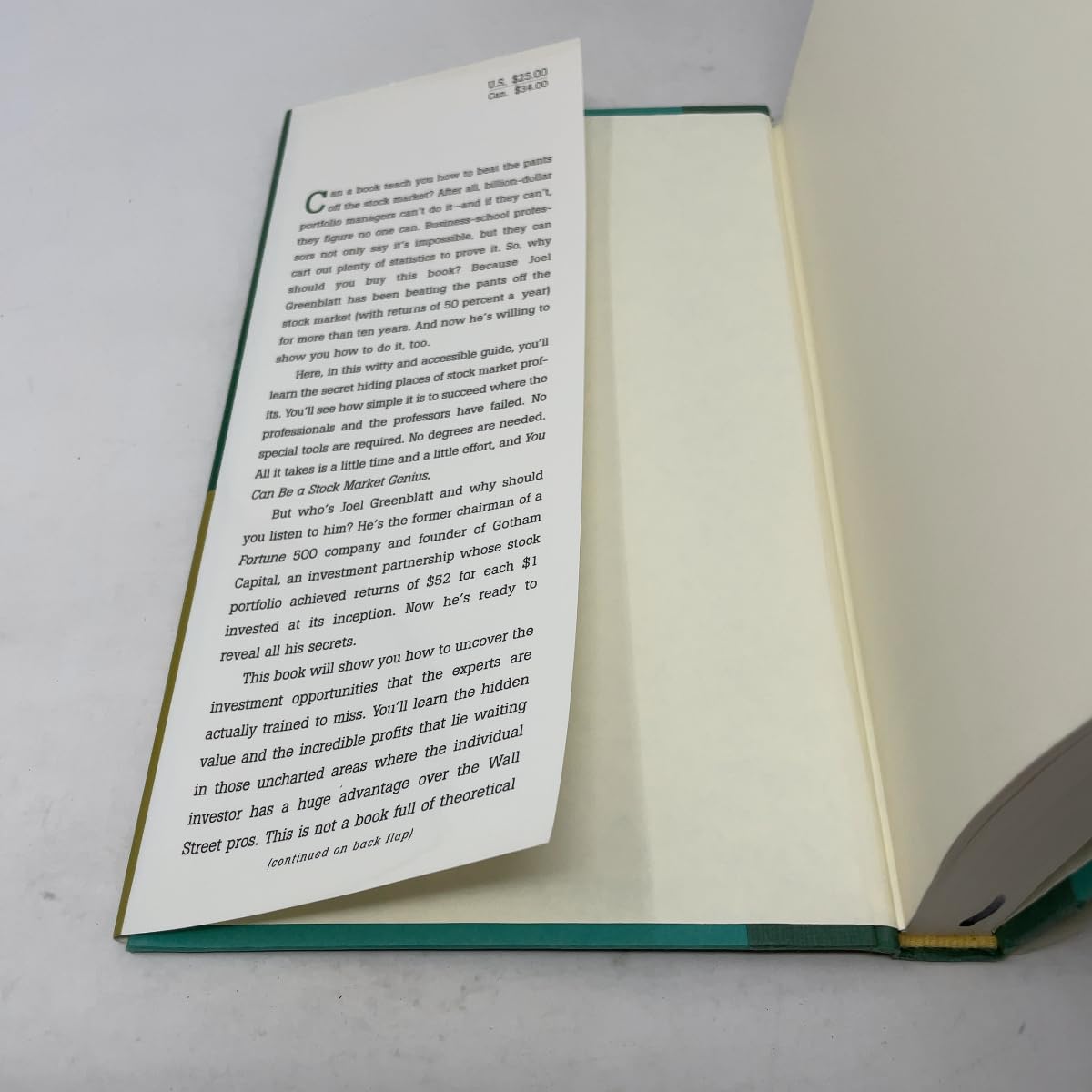Can a book teach you how to beat the pants off the stock market? After all, billion-dollar portfolio managers can't do it -- and if they can't, they figure no one can. Business-school professors not only say it's impossible, but they can cart out plenty of statistics to prove it. So, why should you buy this book? Because Joel Greenblatt has been beating the pants off the stock market (with returns of 50 percent a year) for more than ten years. And now he's willing to show you how to do it, too. Here, in this witty and accessible guide, you'll learn the secret hiding places of stock market profits. You'll see how simple it is to succeed where the professionals and the professors have failed. No special tools are required. No degrees are needed. All it takes is a little time and a little effort, and You Can Be a Stock Market Genius. But who's Joel Greenblatt and why should you listen to him? He's the former chairman of a Fortune 500 company and founder of Gotham Capital, an investment partnership whose stock portfolio achieved returns of $52 for each $1 invested at its inception. Now he's ready to reveal all his secrets. This book will show you how to uncover the investment opportunities that the experts are actually trained to miss. You'll learn the hidden value and the incredible profits that lie waiting in those uncharted areas where the individual investor has a huge advantage over the Wall Street pros. This is not a book full of theoretical possibilities; You Can Be a Stock Market Genius is a practical guide to finding those special situations in which big profits are possible. It's all here, including specific case studies, the background information you need, and the tools you'll use. If you're an investor who wants to beat the market, you've come to the right place. If you want to be a stock market genius, just think of this book as your personal treasure map to the secret hiding places of the stock market profits that you've been looking for.