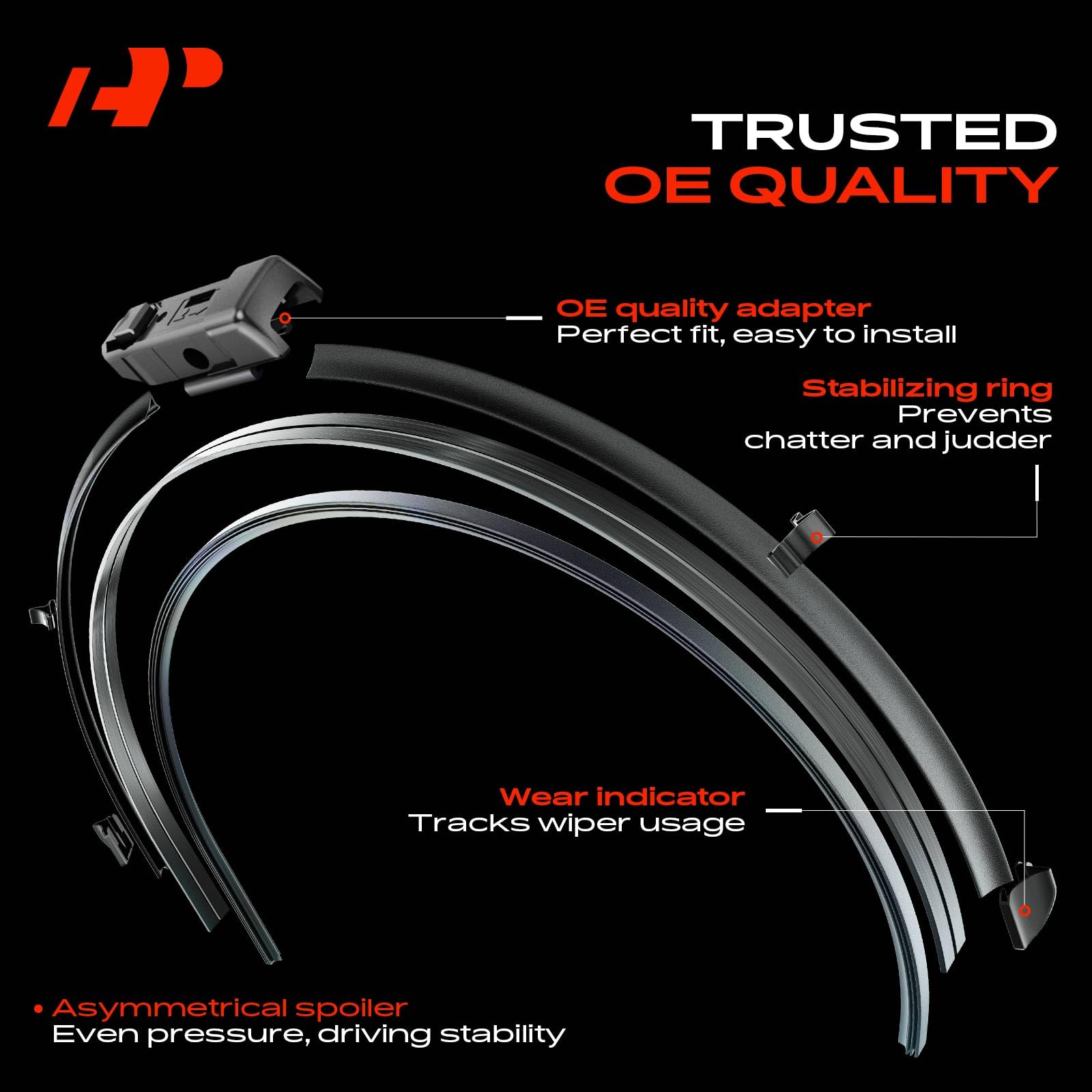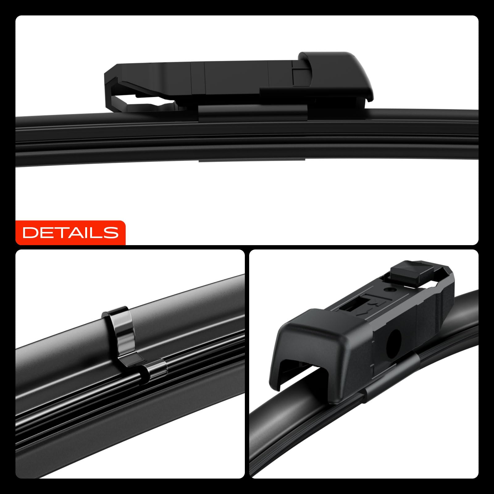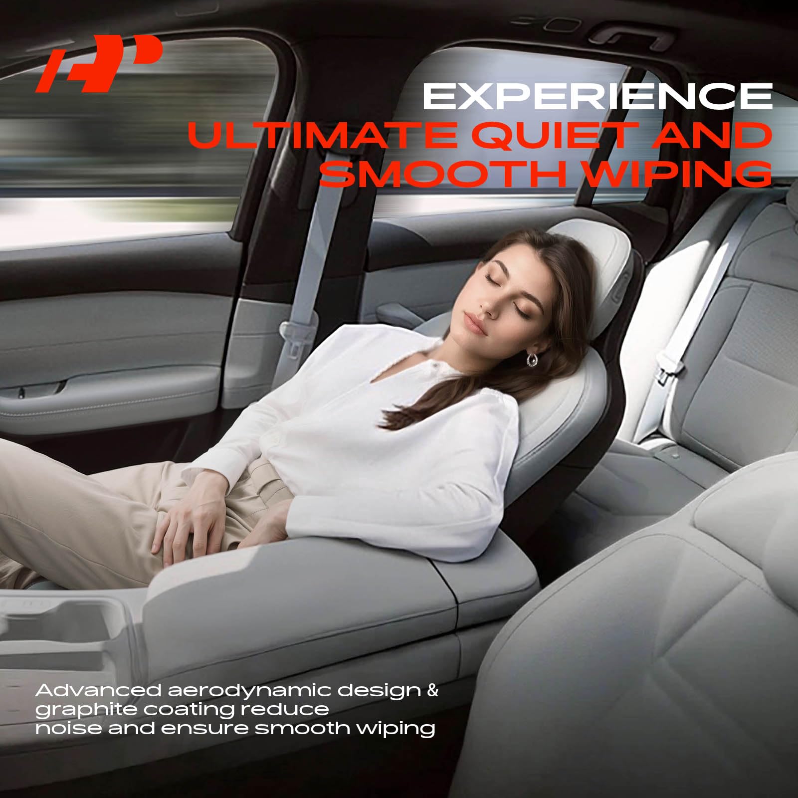 [High-Performance A-Premium Wiper Blade]: Featuring a dual-spring steel structure, constructed from high-tensile carbon steel, the windshield wiper blades maintain uniform pressure distribution across the entire glass curvature. This eliminates skipping/missed wiping caused by localized pressure points. The patented coating on the wiper blade ensures silent operation