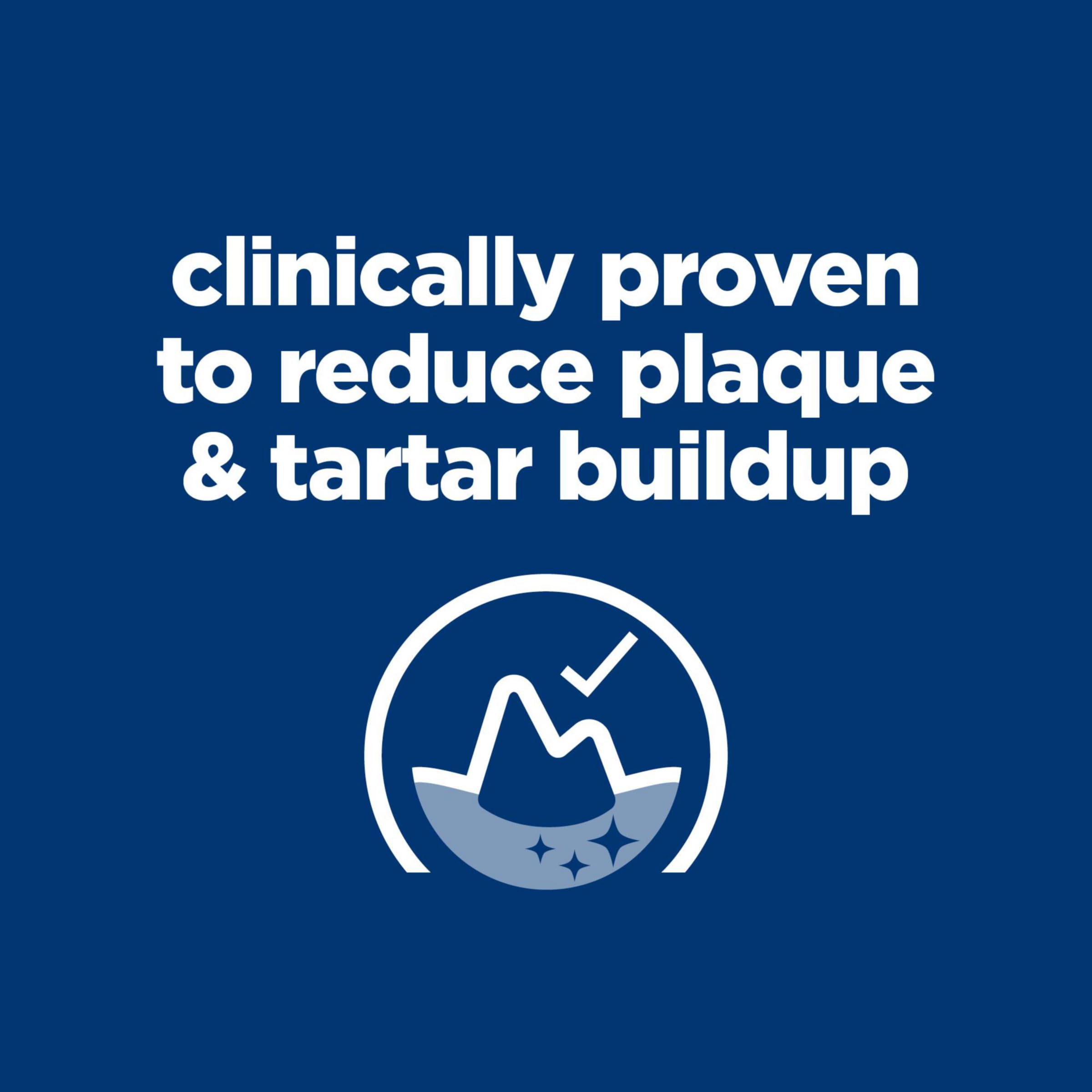 Hill's Prescription Diet t/d Dry Dog Food is clinically proven nutrition to reduce plaque, stain & tartar buildup and clean up to the gum line. The triple action fiber matrix technology works like a toothbrush, dental floss and mouthwash all in one and is formulated as a complete and balanced nutritional solution for your dog's daily health and immune system support.The unique kibble size, shape and texture help scrub the teeth to remove plaque and clean up to the gum line to promote fresh breath and healthy gums & teeth. Exclusive feeding of Hill's Prescription Diet t/d Dog Dry Food is shown to be more effective than toothbrushing. This food is recommended for lifelong feeding of adult dogs. It’s also formulated to promote a urinary environment that reduces the risk of developing struvite and calcium oxalate crystals. It’s made in the USA with global ingredients you can trust, and was developed by Hill’s nutritionists and veterinarians. Please consult your veterinarian for further information on how Hill's Prescription Diet foods can help your dog continue to enjoy a happy and active life. Hill's Prescription Diet t/d Dry Dog food is accepted as the ONLY therapeutic nutrition for proven reduction in buildup of both plaque & tartar by Veterinary Oral Health Council (VOHC).*