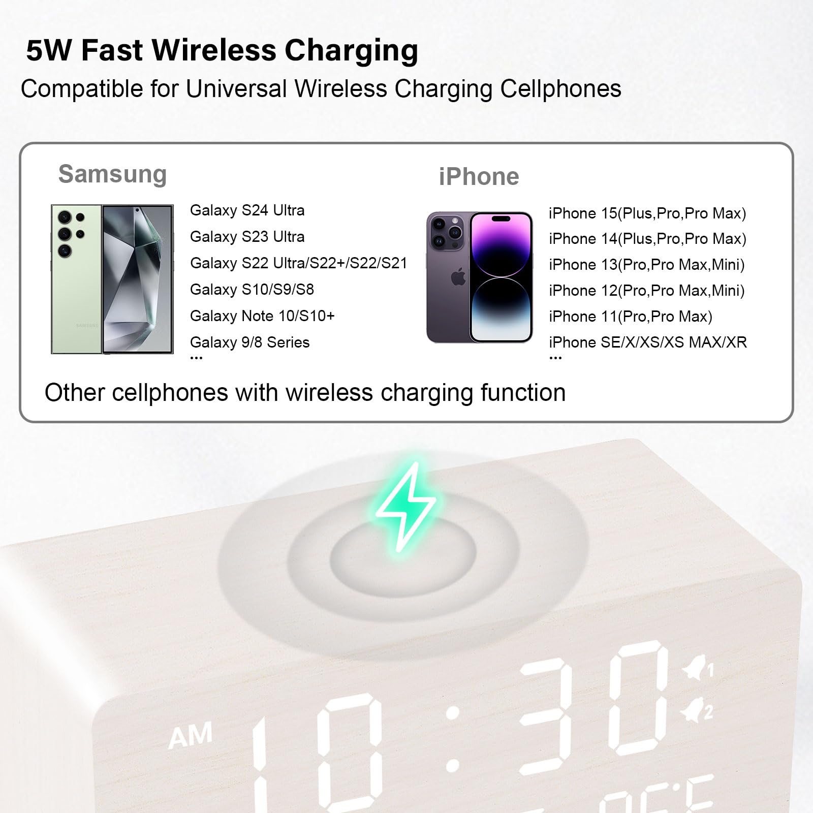 ⏰【Stable Wireless Charging Station】- This wireless charging alarm clock supports wireless charging for universal cellphones in a stable and efficient way without overheating. It is very convenient and saves space, keeping your bedside table tidy.