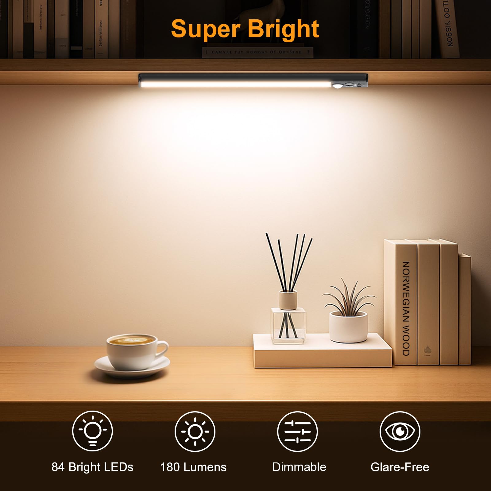 Upgraded Premium Functionality: Built-in 84 super bright LEDs, the Gritin under cabinet light is crafted with aluminum alloy and durable ABS plastic for ultimate strength and style. Setting the under cabinet lights on motion sensor mode, it features a 120° wide sensing angle and a 3M/10FT detection distance, automatically turning off after 20 seconds of no motion detected, ensuring you never fumble for switches.