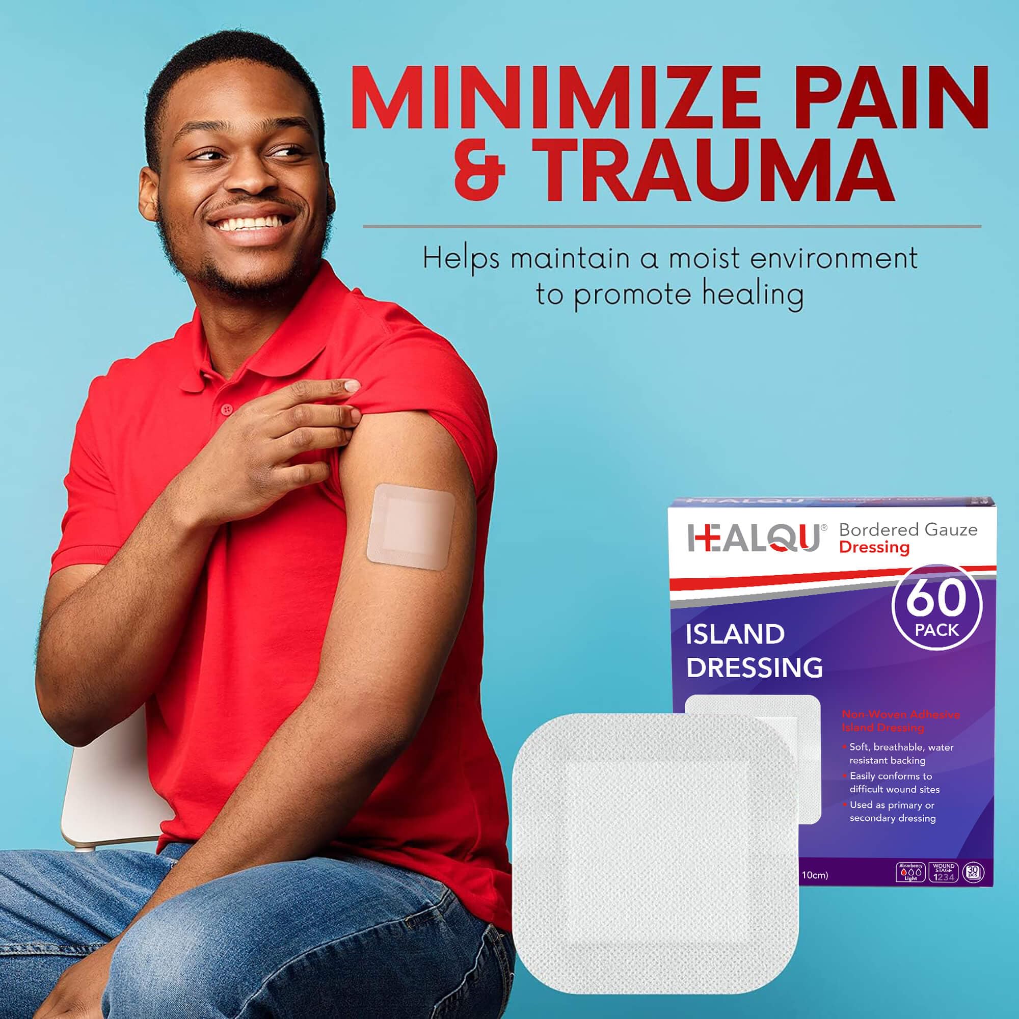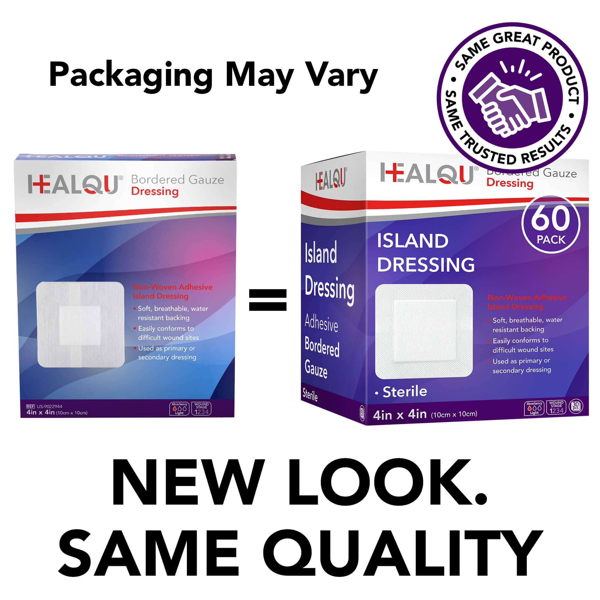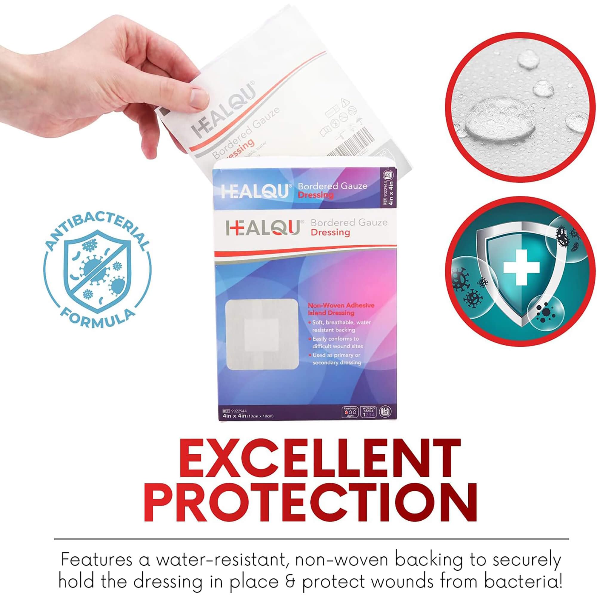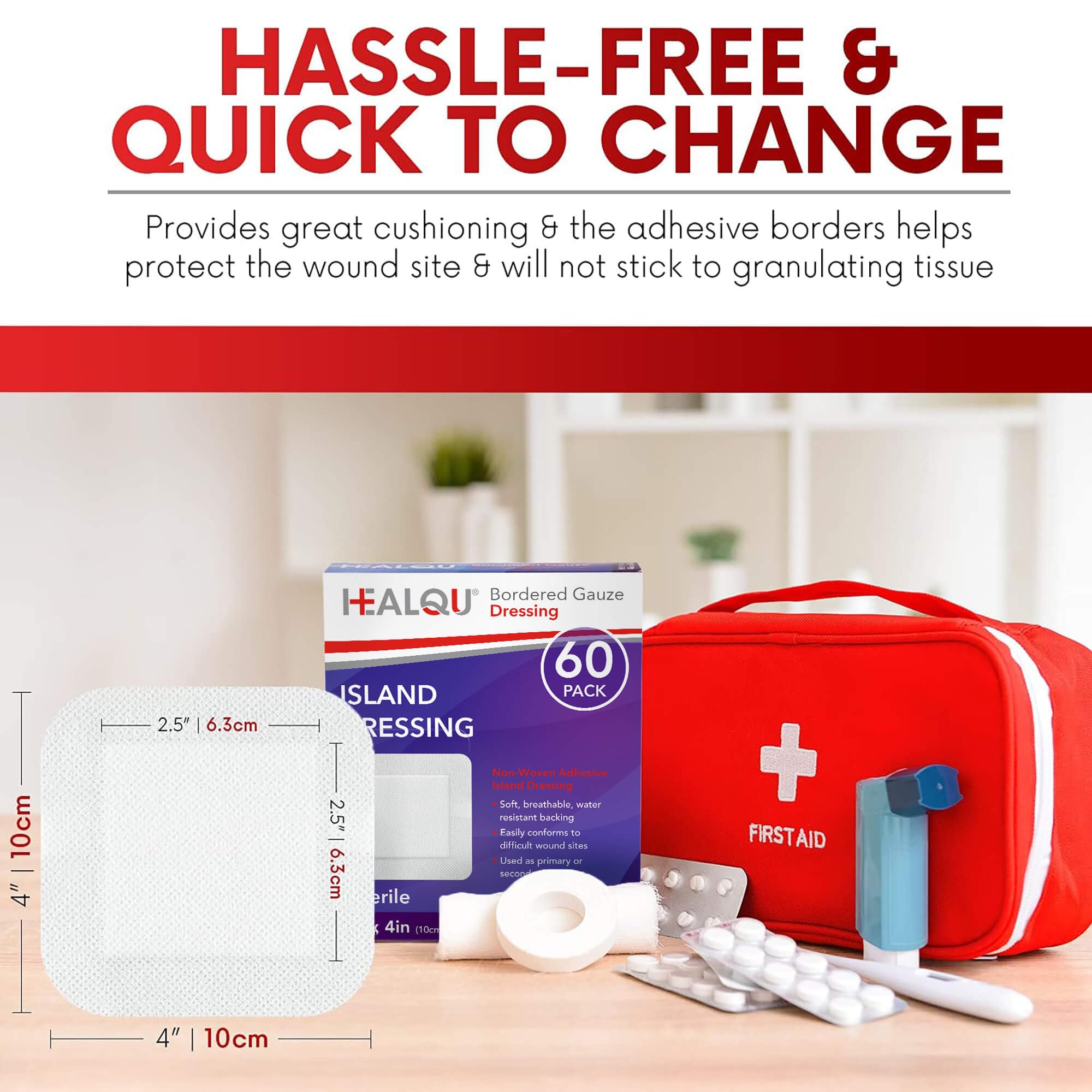 QUICK & EASY TO USE! Sticky around the edges but not in the middle, Healqu Bordered Gauze Island Dressings protect fresh cuts and scrapes without sticking to the wound, for good protection while healing. Simply peel & stick, and get on with the rest of your day!
