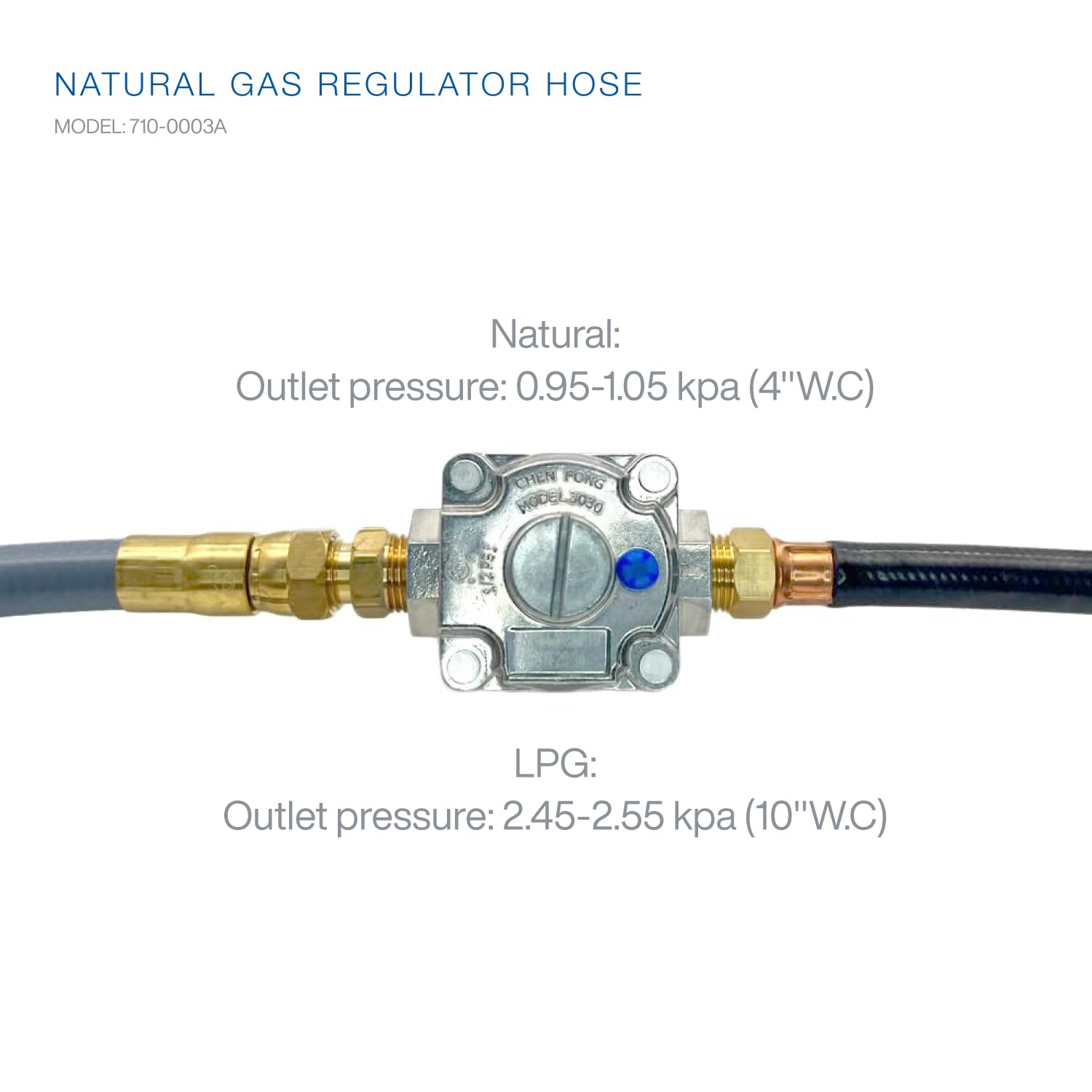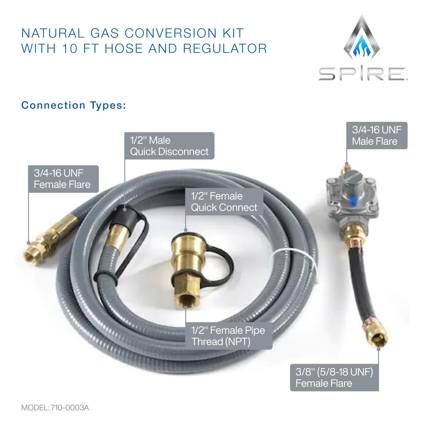 Complete Conversion Kit – Includes: 10 ft. NG hose with quick connector, NG regulator, 5.9 in. NG regulator hose, 6 mm wrench, 6 mm nut driver, and hex key (orifices not included)
