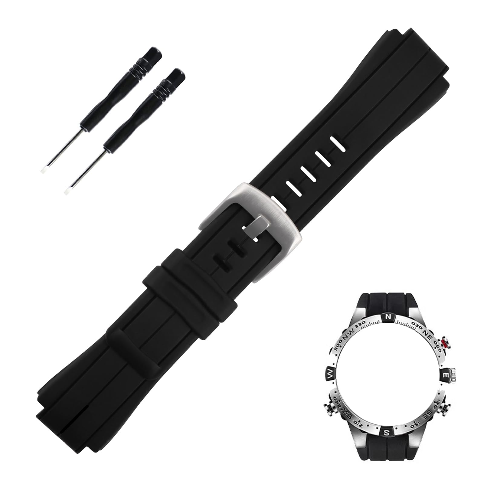 【Free Installation Tools】 1 x 24mm x16mm Rubber Watch Band+1x Tool+3x Spring Bar