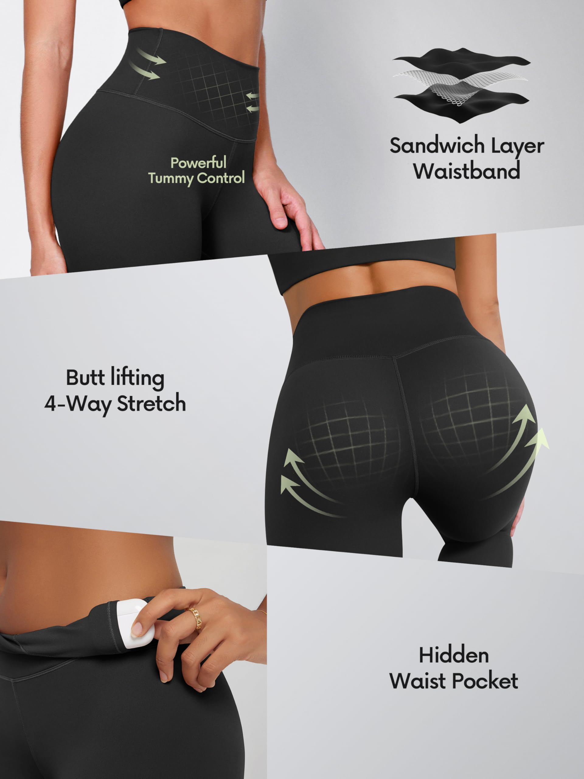 Seamless sandwich-layer waistband provides tummy control and a smooth, stay-put fit, keeping you secure and comfortable all day.