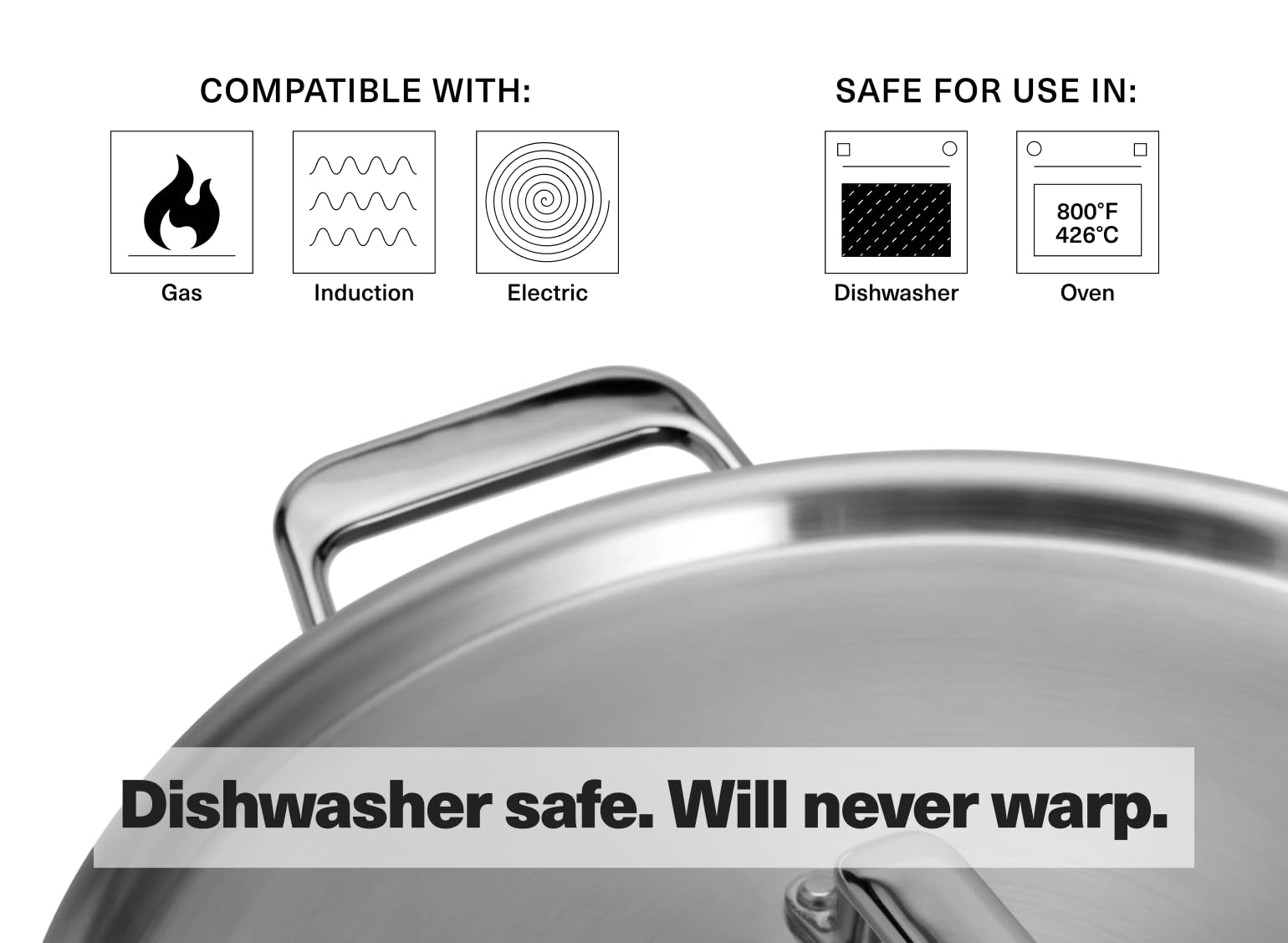 Cookware For A Lifetime: Strong riveted construction and 3.0mm 5 ply steel make our stainless steel cookware highly durable for a lifetime of cooking. All Misen stainless cookware is compatible with gas, electric and induction cooktops.