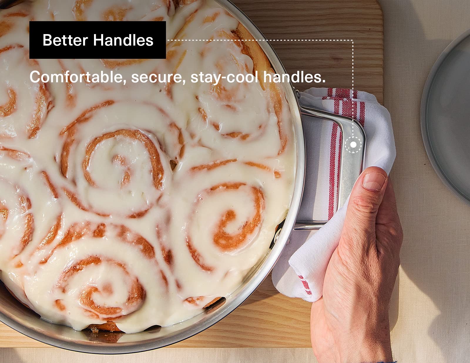 Stay-Cool Handles: The 6 qt rondeau features ergonomic handles that offer a more secure, comfortable grip and remain cool to the touch during stove-top cooking.