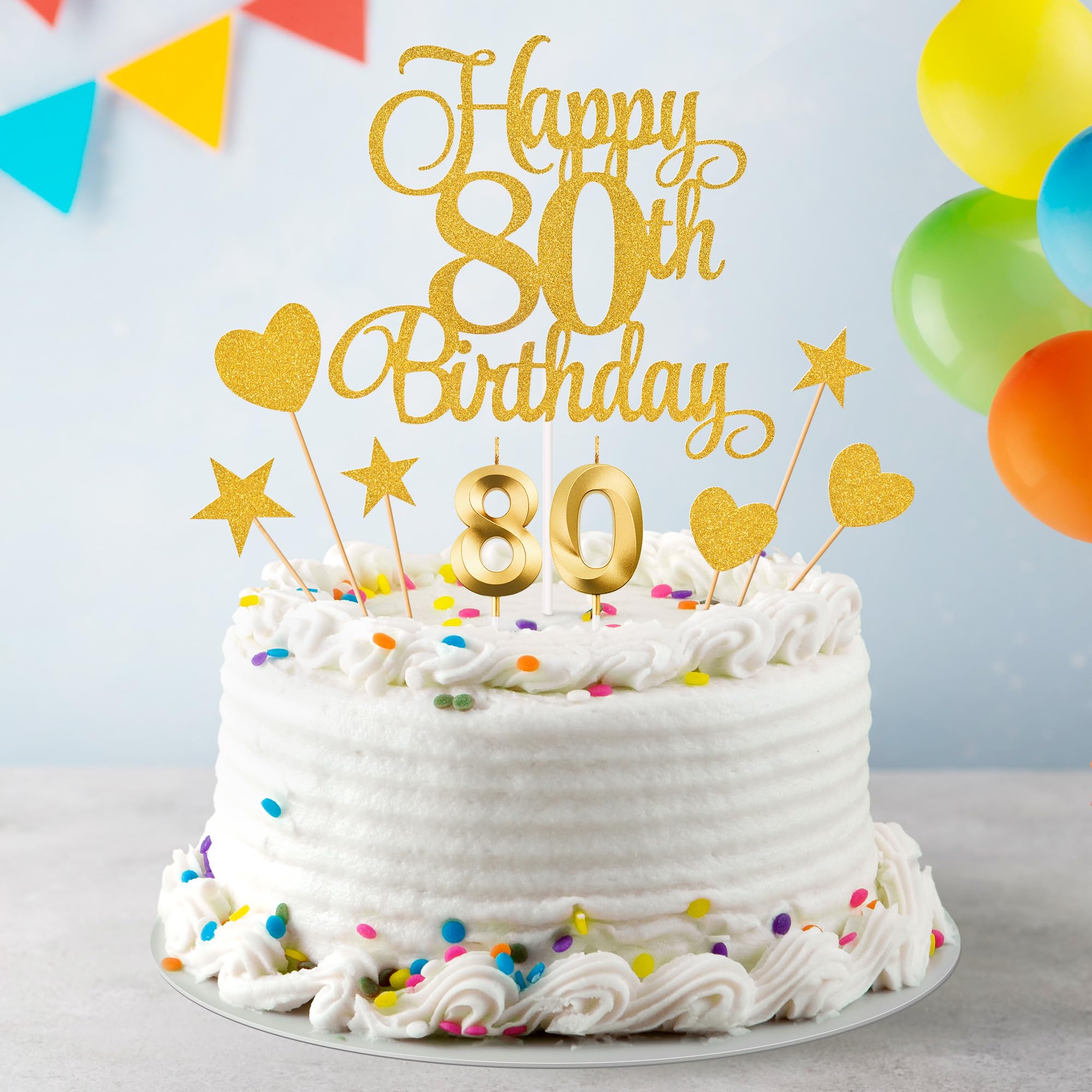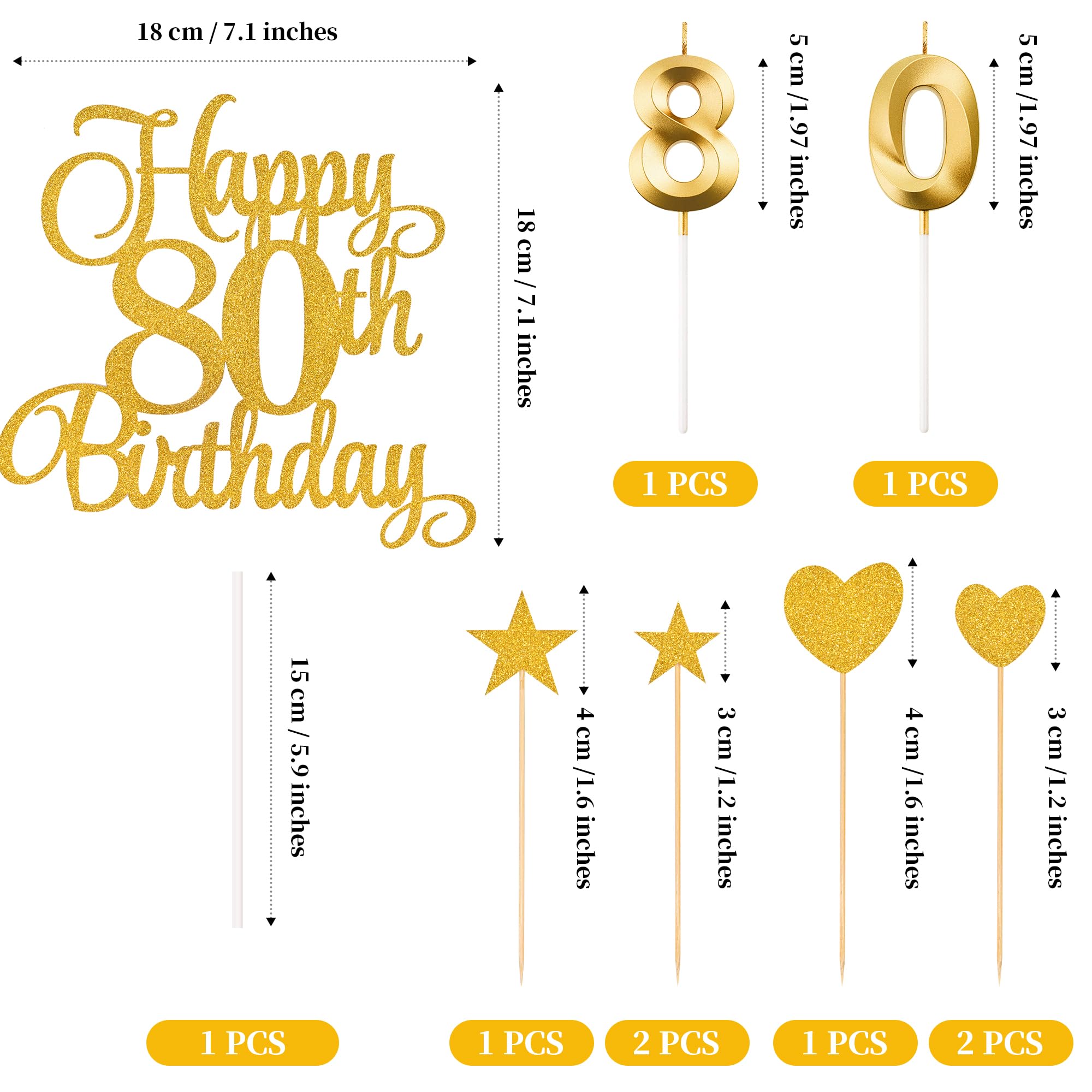 Package content: you will receive 1 piece happy 80th birthday topper, 3 pieces star cake toppers, 3 pieces heart cake toppers and 2 pieces numeral candles, it's a great addition to the 80th birthday party and anniversary party