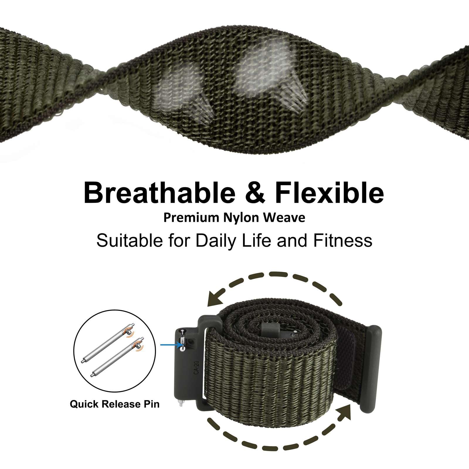 Material: This band is made of durable double-layer nylon weave and the nylon fabric is crafted from cotton woven material which is exceptionally soft and light, making comfortable to wear.