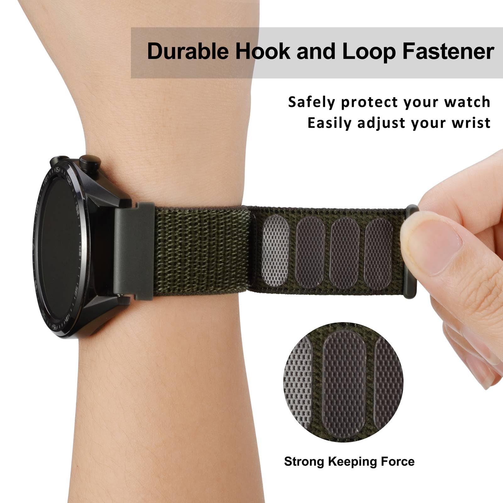 Adjustable: Fit wrist 14.5cm-22cm (5.7-8.6 inches). Adopt an durable Hook and Loop closure which can be cycled (opened and closed) thousands of times, allowing the watch to be fastened or adjusted in seconds.