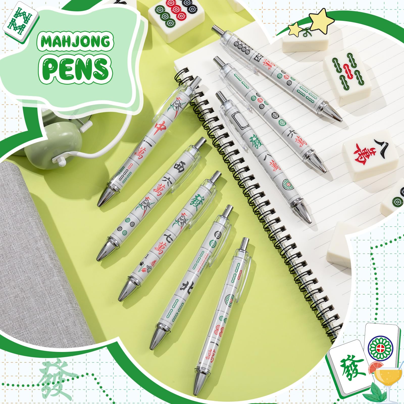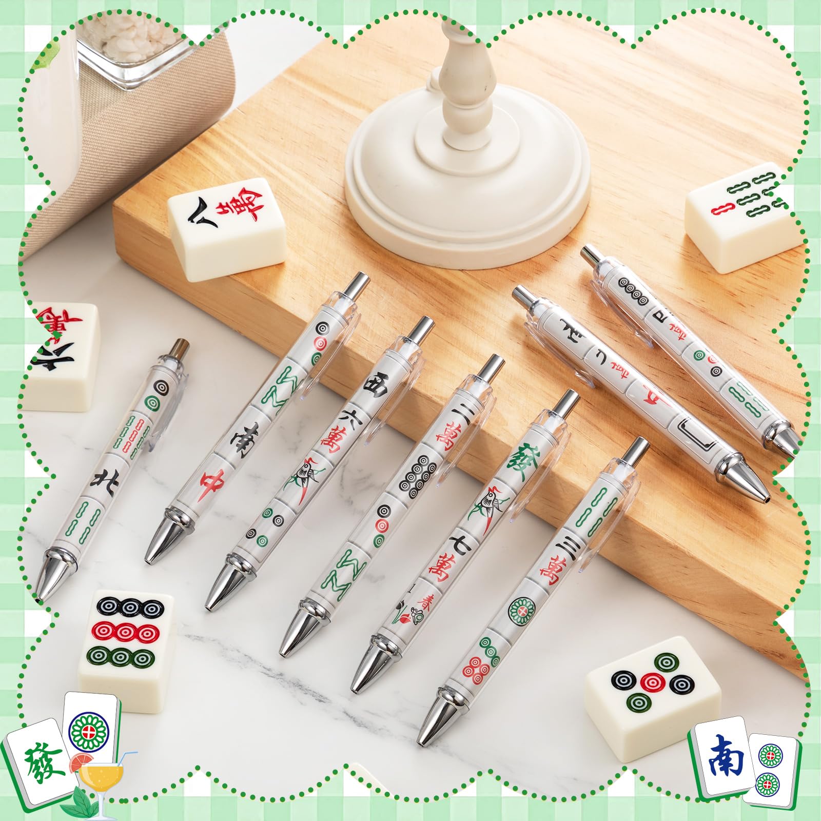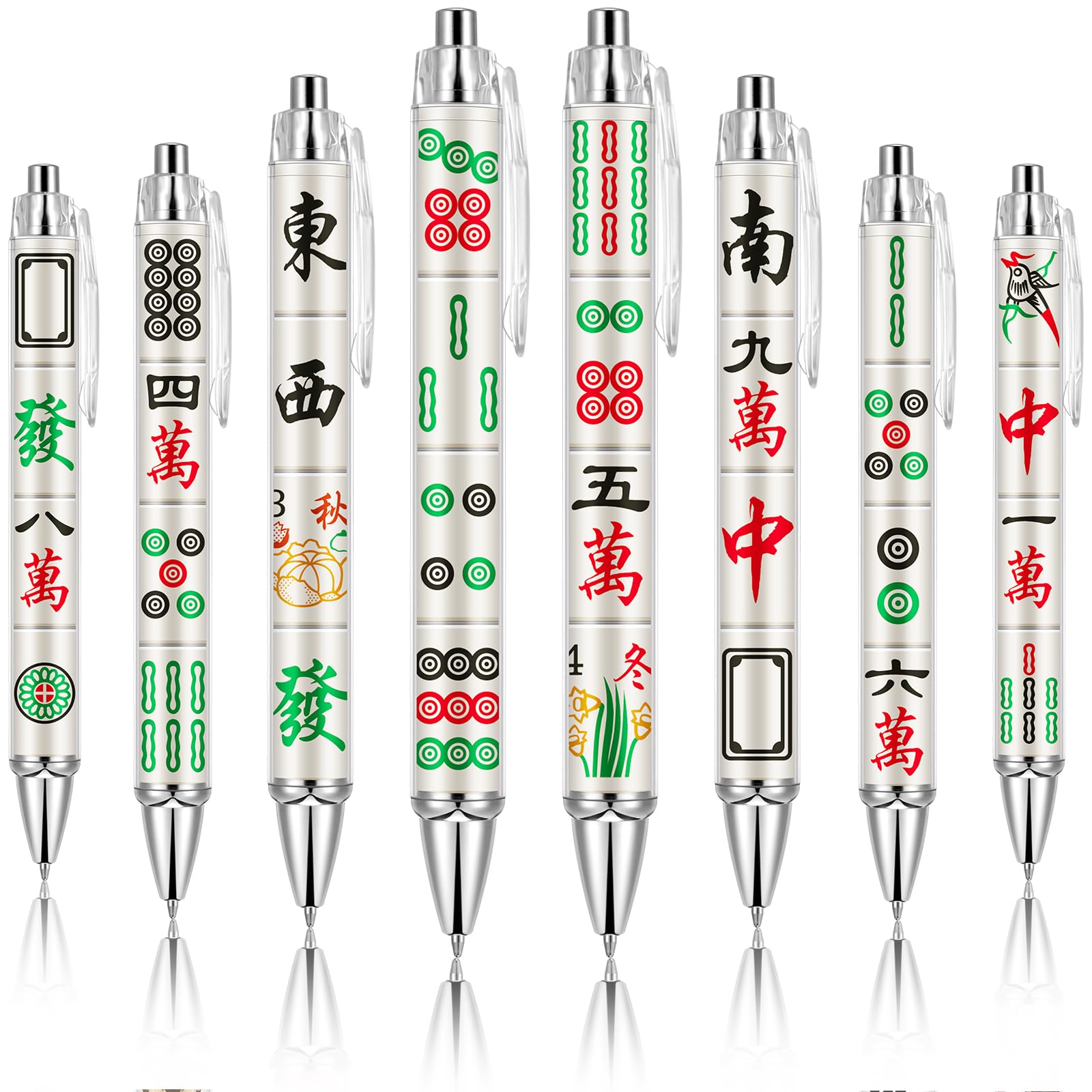 Complete Variety Set: you will receive 8 mahjong ballpoint pens with different styles in the package, offering a sufficient quantity for your daily needs; This set serves as practical mahjong accessories for various occasions; These items also make thoughtful mahjong gifts for relatives and friends who enjoy the game