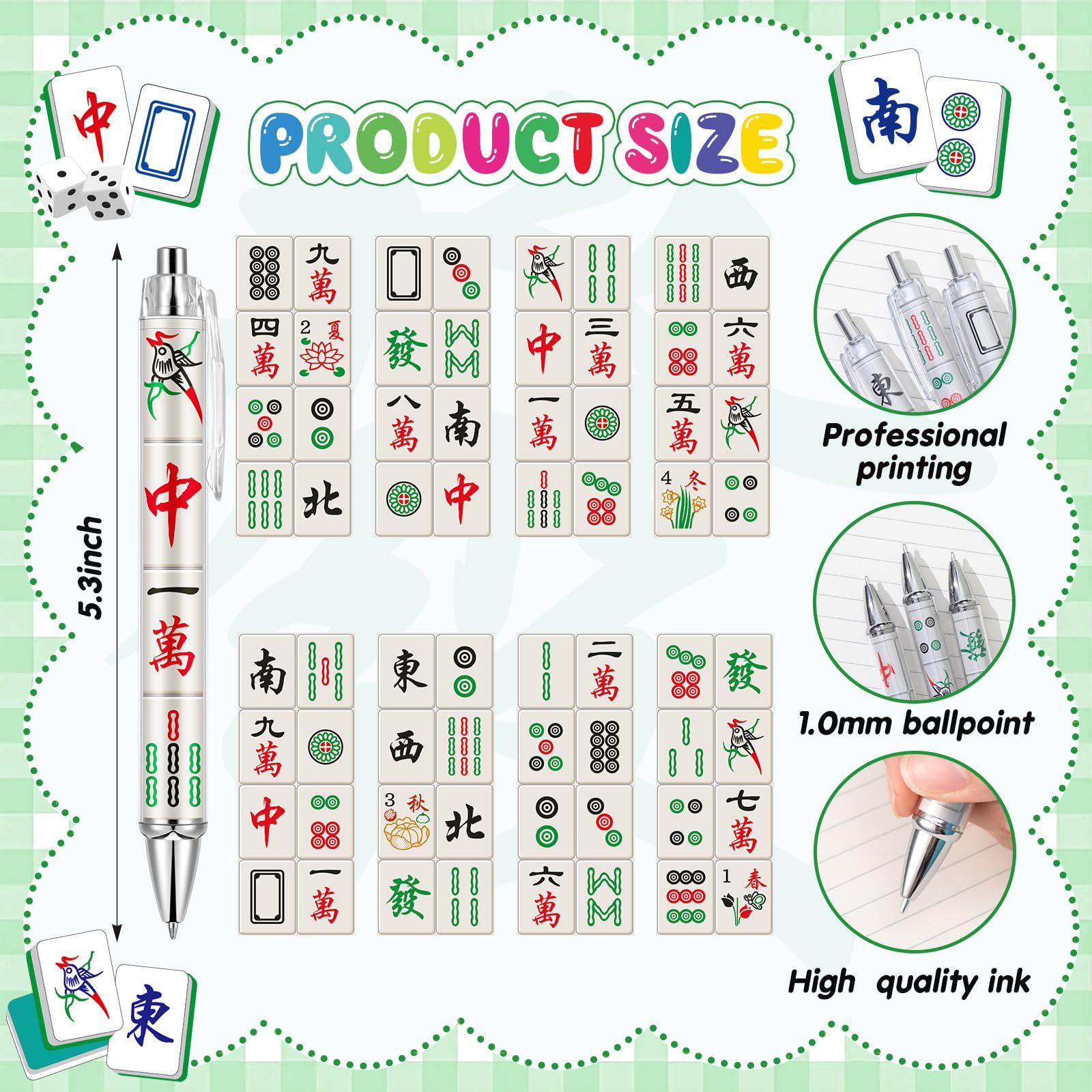 Smooth Writing Performance: these pens have a 1.0mm black ink refill for a smooth writing experience without scratching paper; These versatile mahjong accessories and gifts are durable and ideal for various writing tasks; Use them as daily instruments or display them as charming mahjong decor with your other mahjong trinkets and mahjongg accessories