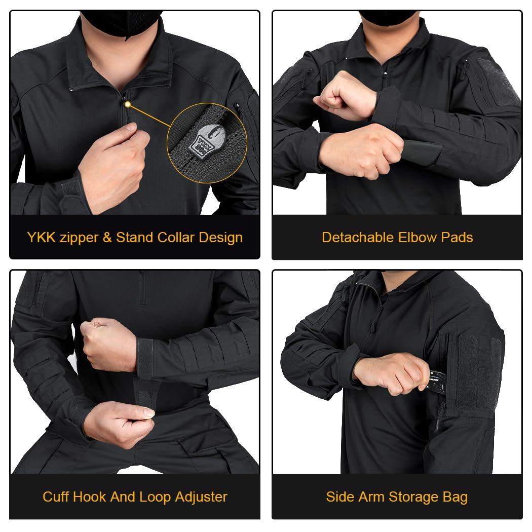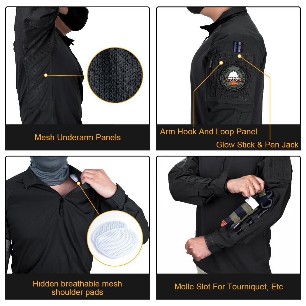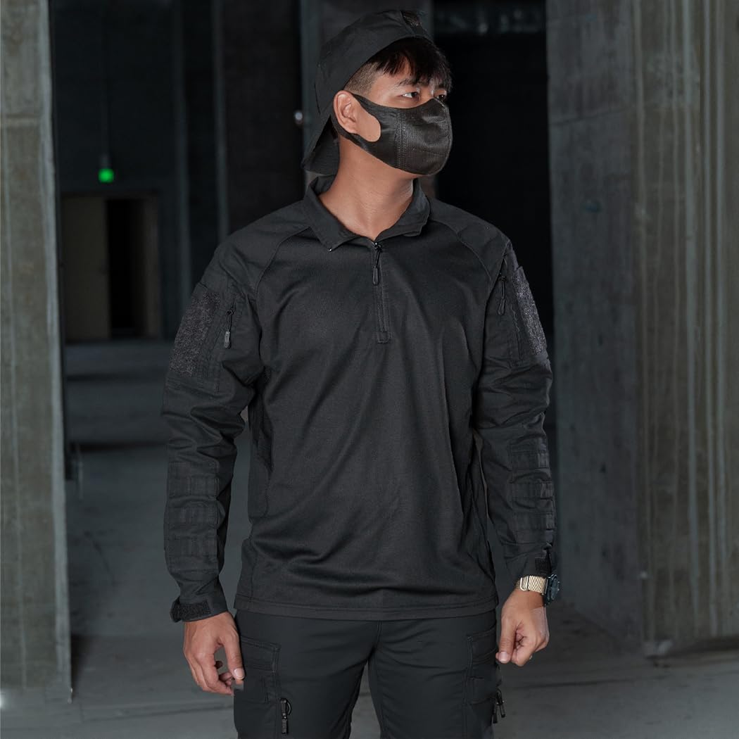 1.IDOGEAR Men's Combat Shirt is made from 100% polyester in the body, a 40% cotton, 55% polyester and 5% spandex blend in the arms, and moisture wicking mesh fabric in the body and underarms to keep you dry during outdoor activities such as hiking, fishing and camping.