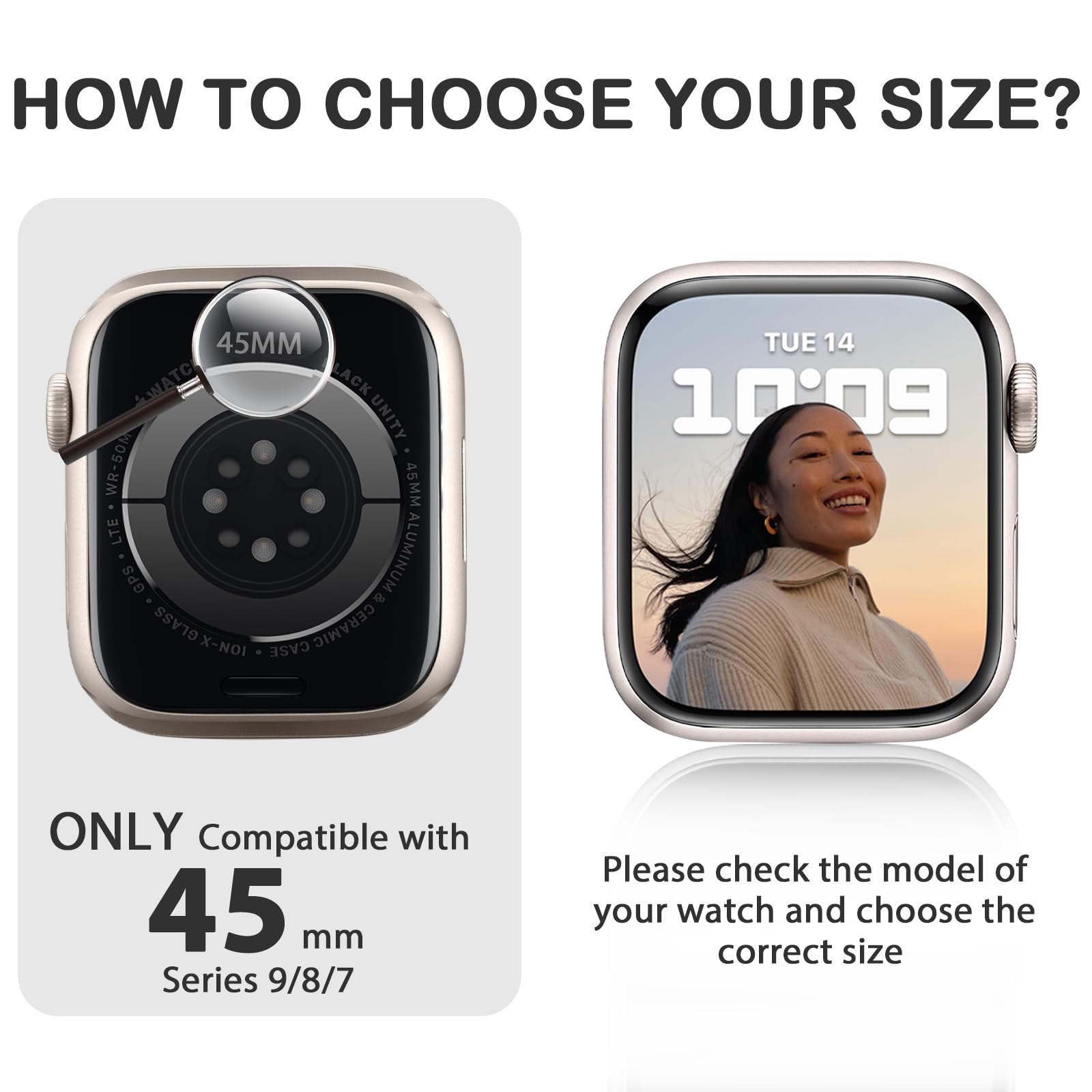 Compatible Model: 8-Pack Tempered Glass Privacy Screen Protectors ONLY fit for Apple Watch Series 9/8/7 45mm. Please choose correct size variation befor you purchase. Precision-cut openings ensure full access to crown, sensors, and charging port
