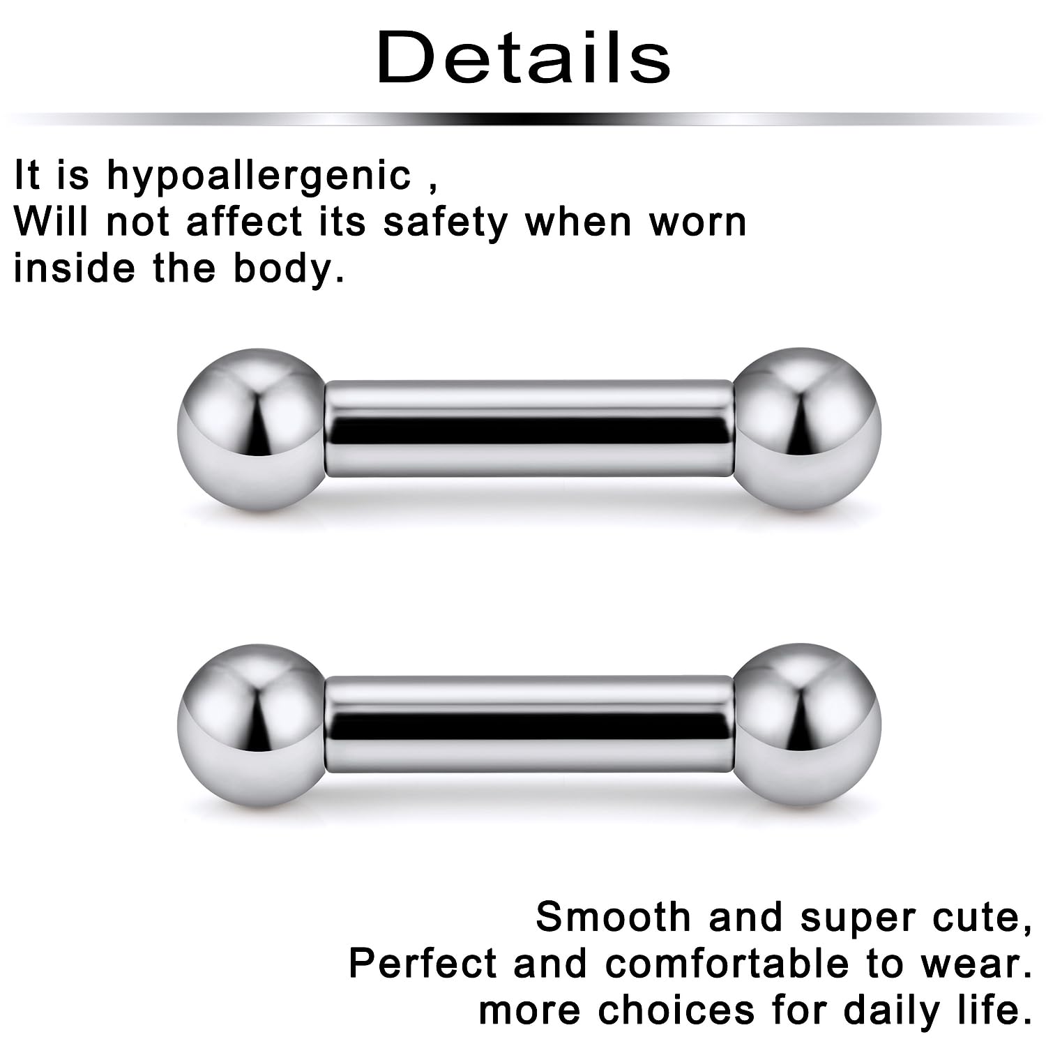 These Straight Barbells Hold the Ball in Place with Pressure From the Ring, Loaded Straight Barbells, Easy Pop Out, Large Gauges Often Require Ring Opening Pliers. Perfect for Nipple, Tongue, Conch, Lip, Genital Prince Albert Piercing.