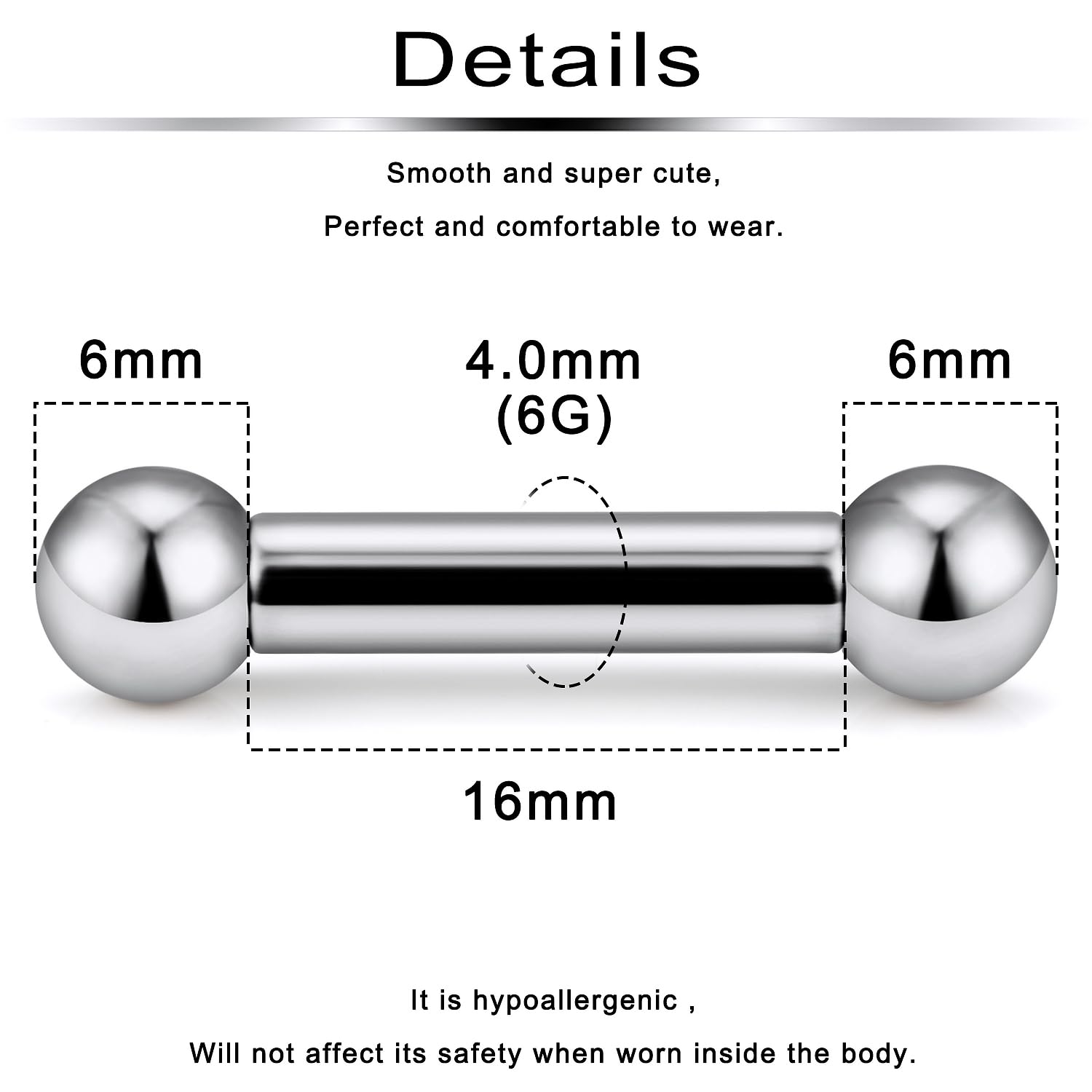 Thickness: 6G (4.0mm); Ball Diameter: 8mm; Bar Length: 16mm (5/8inch).
