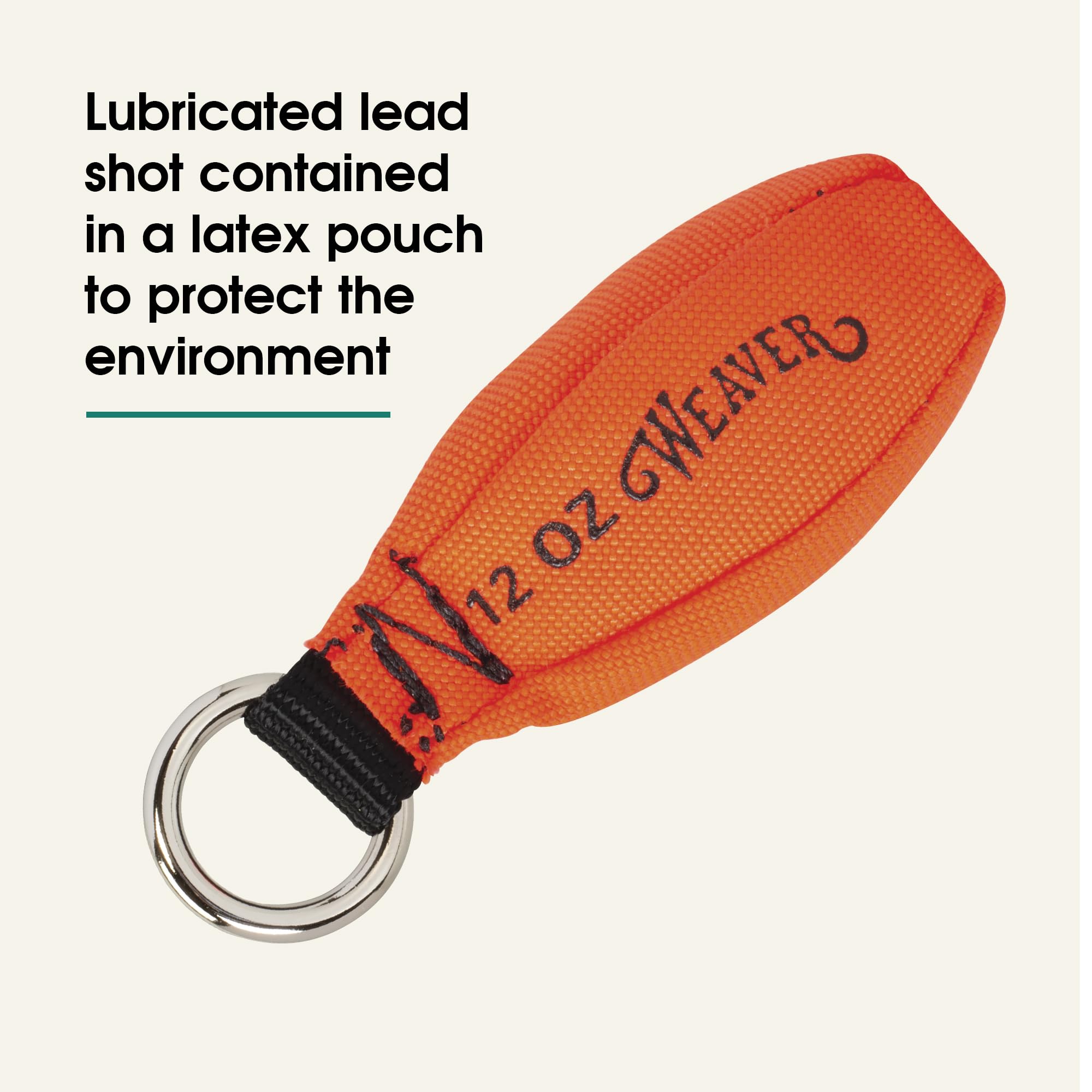 Weaver Arborist Throw Ball Weight: The reliable and durable climbing gear and equipment are ideal for a wide range of arborist tasks. Proudly handcrafted, this 12 oz throw ball arborist weight is your go-to tool for efficient and precise tree work exceptionally easy to handle. The aerodynamic professional tree work equipment enhances the range and accuracy of your throw, effortlessly reaching even the highest and most challenging branches, ensuring your ropes are perfectly positioned every time. The arborist slingshot is available in multiple colors and sizes. The throw weight with ring provides a strong attachment point for ropes. Our climbing rope bag is filled with #8 shot, which moves to prevent the weight from getting hung up in tree branches.