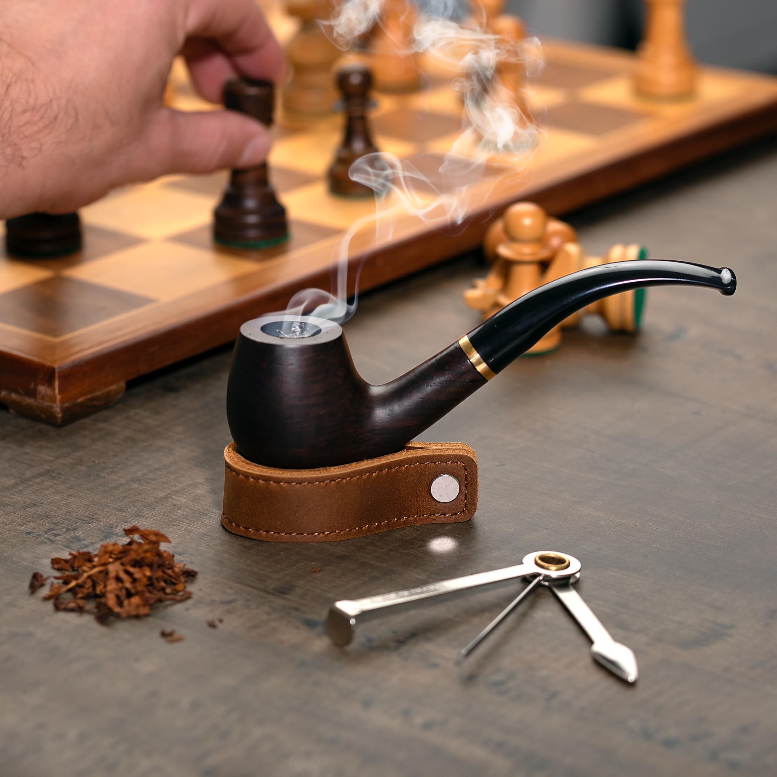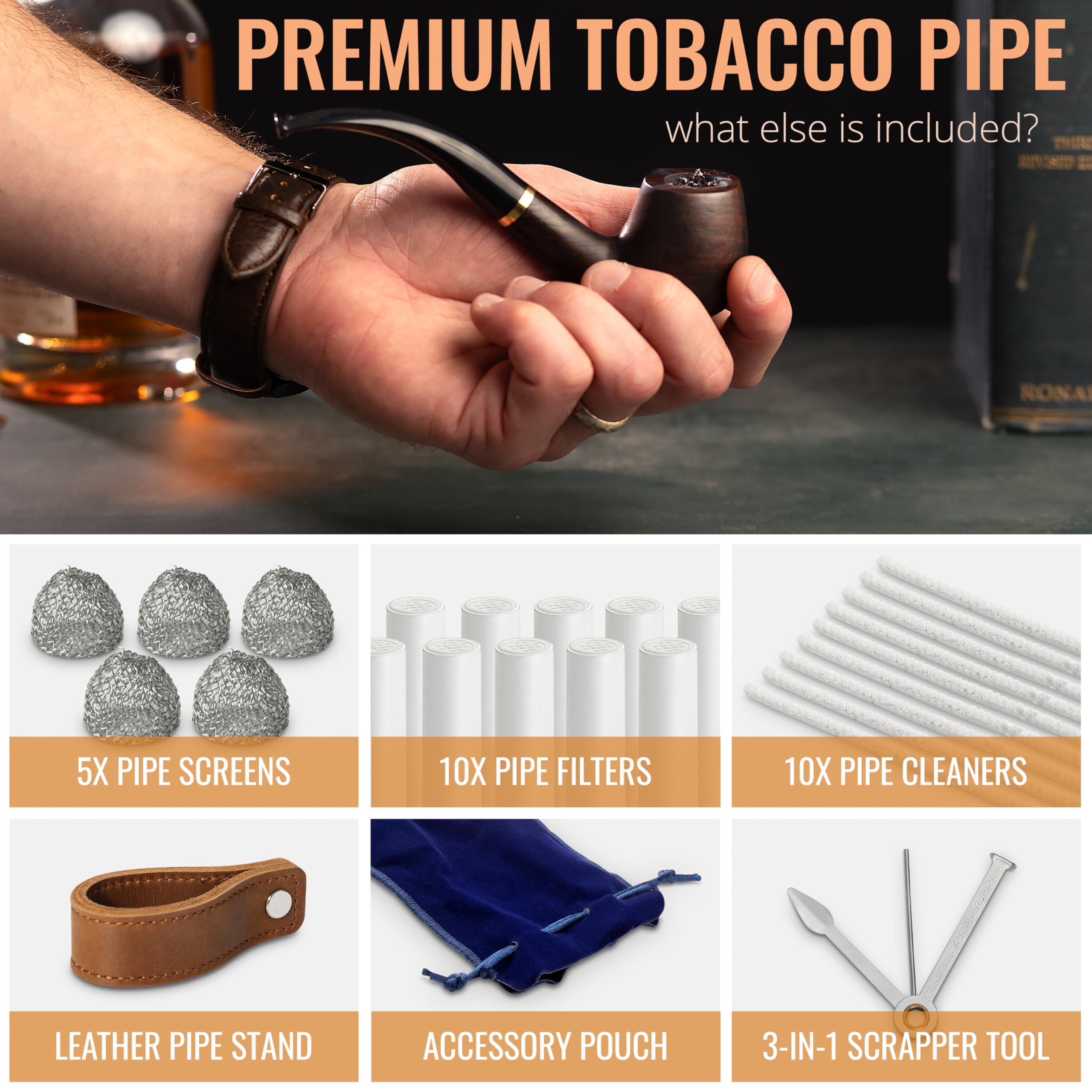 Complete Smoking Experience: This all-inclusive kit features a high-quality wooden pipe, interchangeable stems for personalized comfort, a convenient leather pipe stand, and cleaning tools. Perfect for both seasoned enthusiasts and beginners.