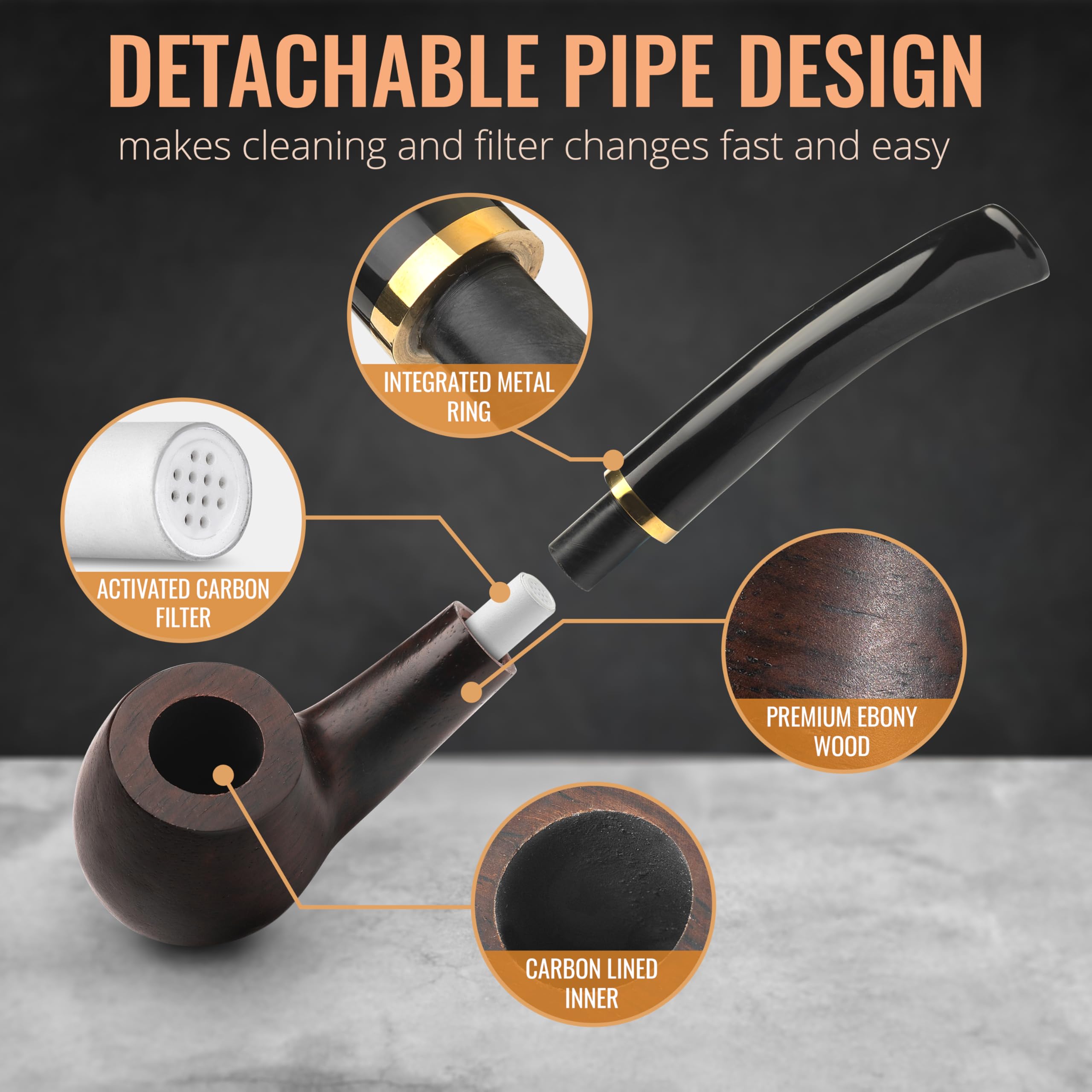 Handcrafted Excellence: Our tobacco pipe kit is meticulously carved from premium ebony wood, ensuring both elegance and durability. Experience a smooth draw and rich tobacco flavor with our expertly crafted pipes.