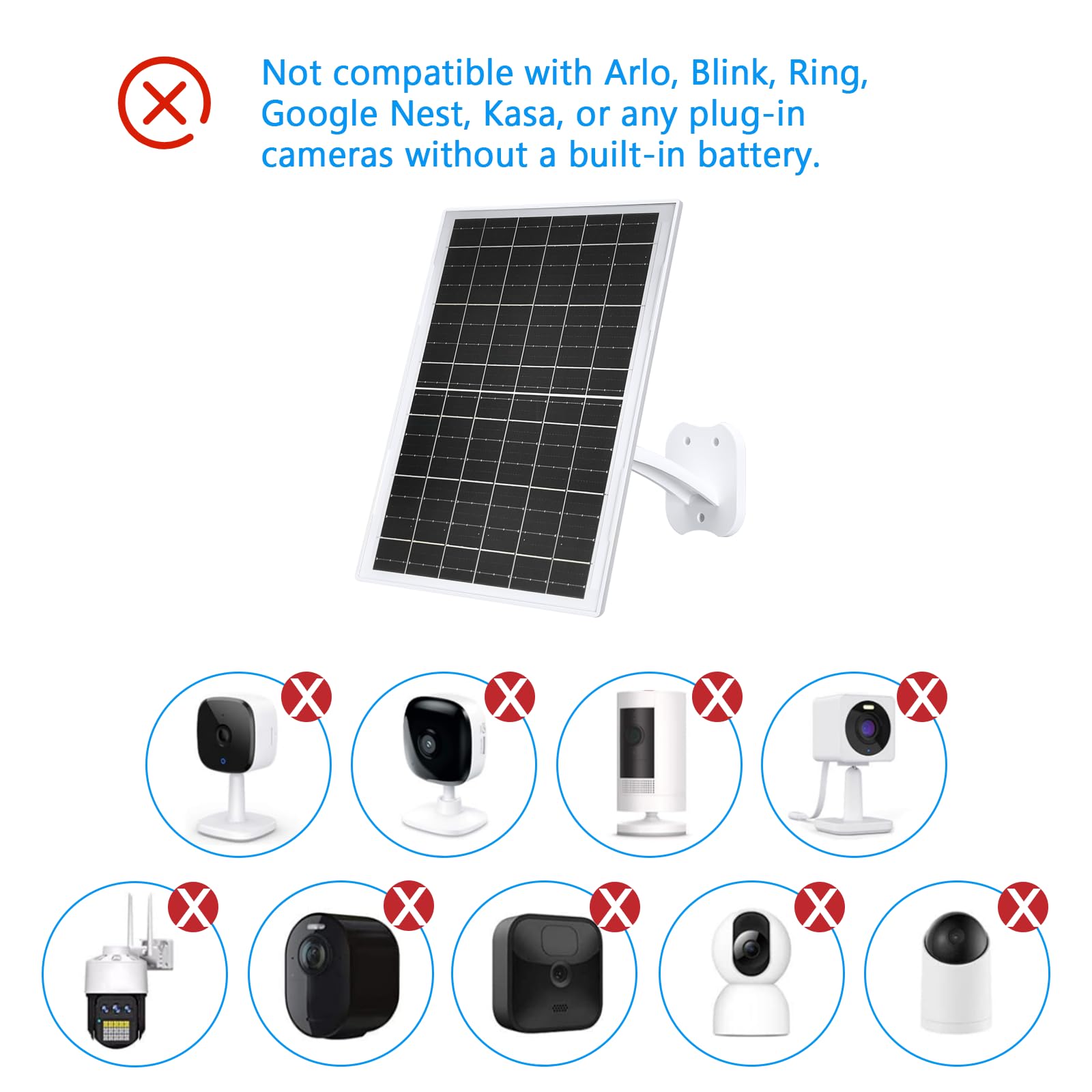 Enhanced Power Output – Upgraded to 13 watts, this security camera solar panel delivers more energy than 10W alternatives, ensuring faster and more reliable charging for your devices. Its high-efficiency monocrystalline cells maximize sunlight conversion, providing continuous power to your security system.