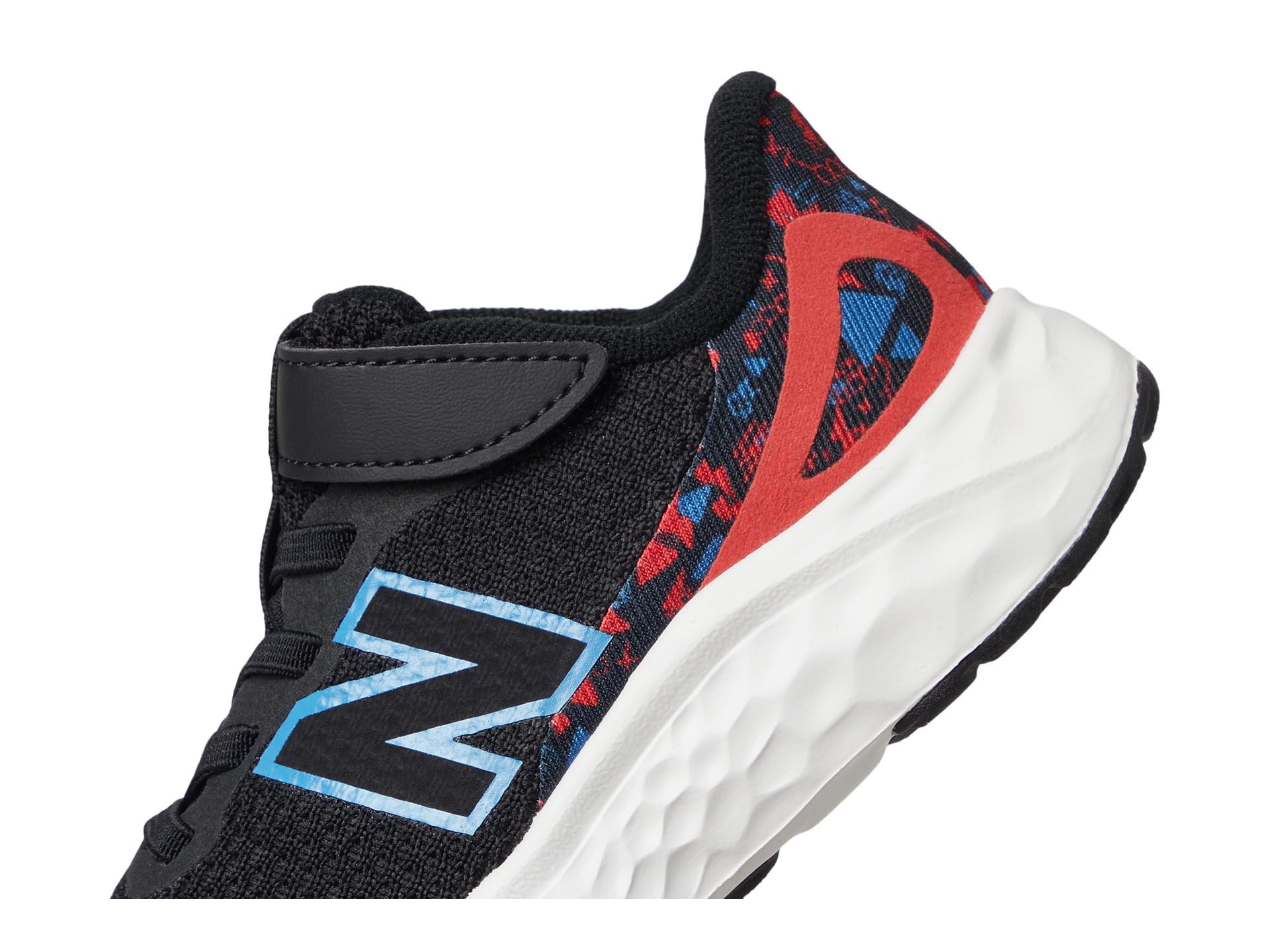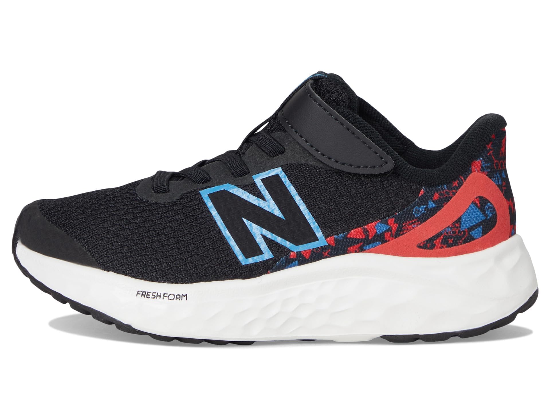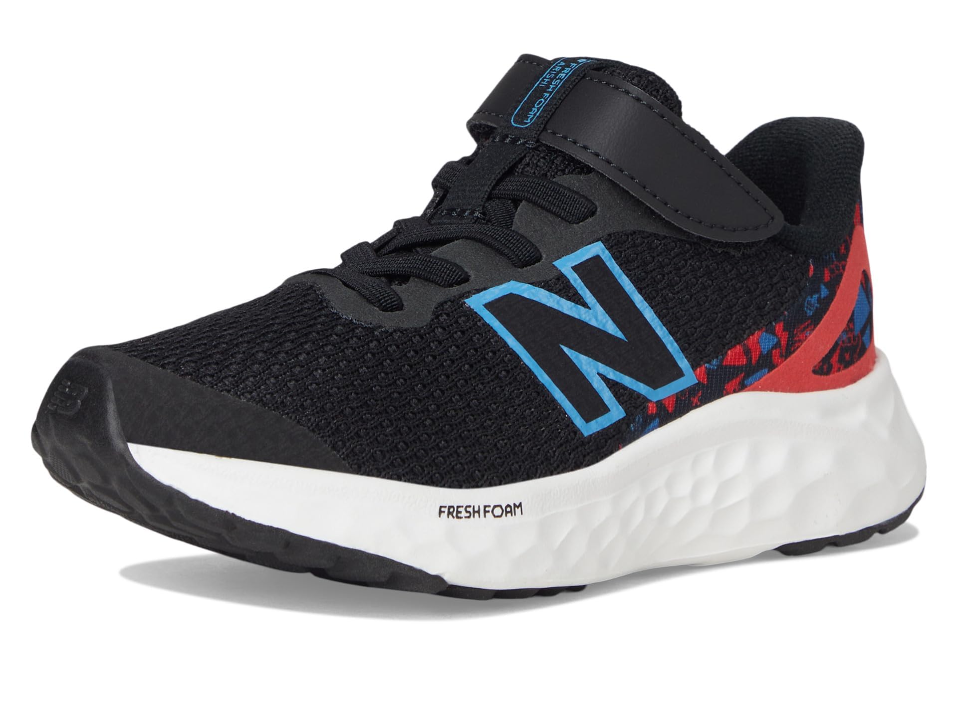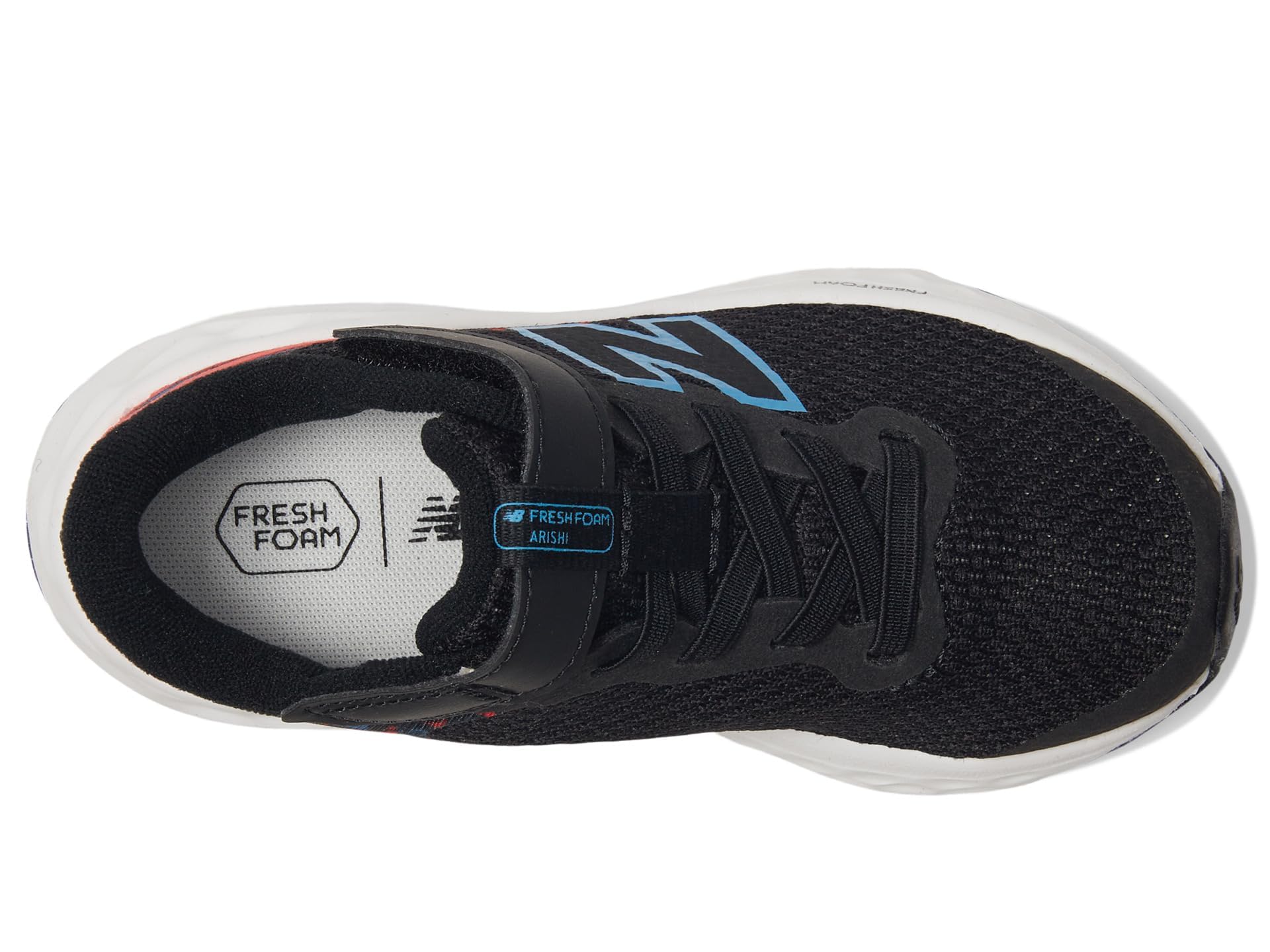 Description The versatile Fresh Foam Arishi v4 Bungee Lace with Hook and Loop Top Strap kids' running shoe from New Balance blends engineered cushioning with sporty good looks. The lightweight Fresh Foam midsole, breathable mesh upper, and rubber outsole pods take growing feet through active days with style. An alternative closure allows for quick and easy changes.