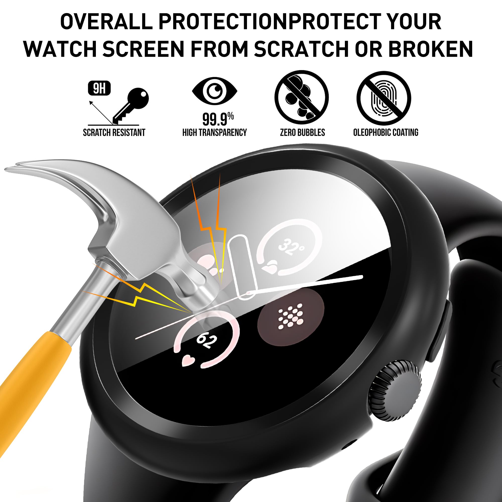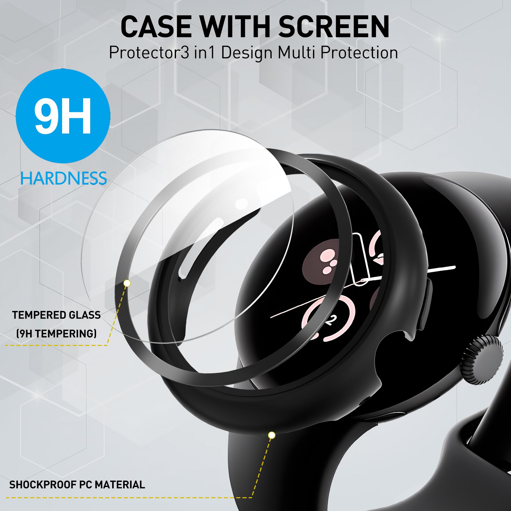 【Compatible model】Perfectly Fit for Google Pixel Watch 2/Google Pixel Watch 41mm, Only Watch Case, Including 3-Pack Case with installation kit.