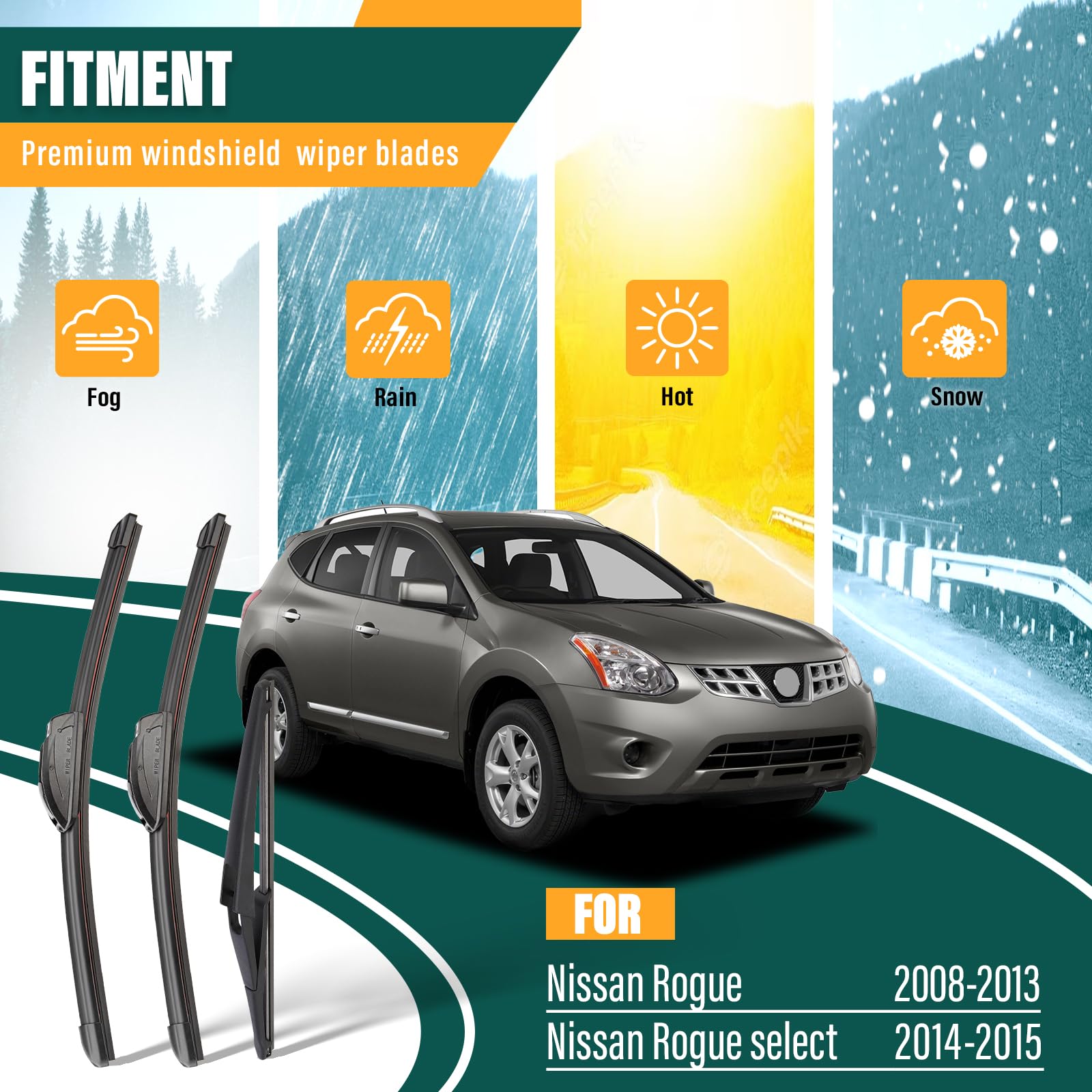 Windshield wiper replacement for Nissan Rogue 2008 2009 2010 2011 2012 2013,Nissan Rogue select 2014 2015.