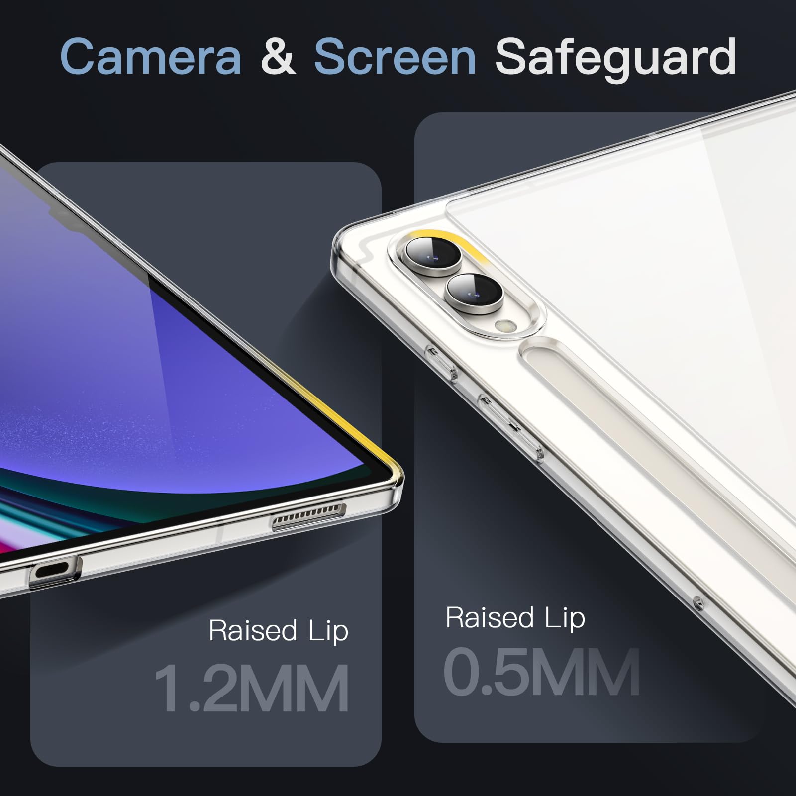 [Hybrid Protection] Built with flexible TPU frame as well as hard PC back, the transparent tablet cover protects your device against daily scratches and shocks