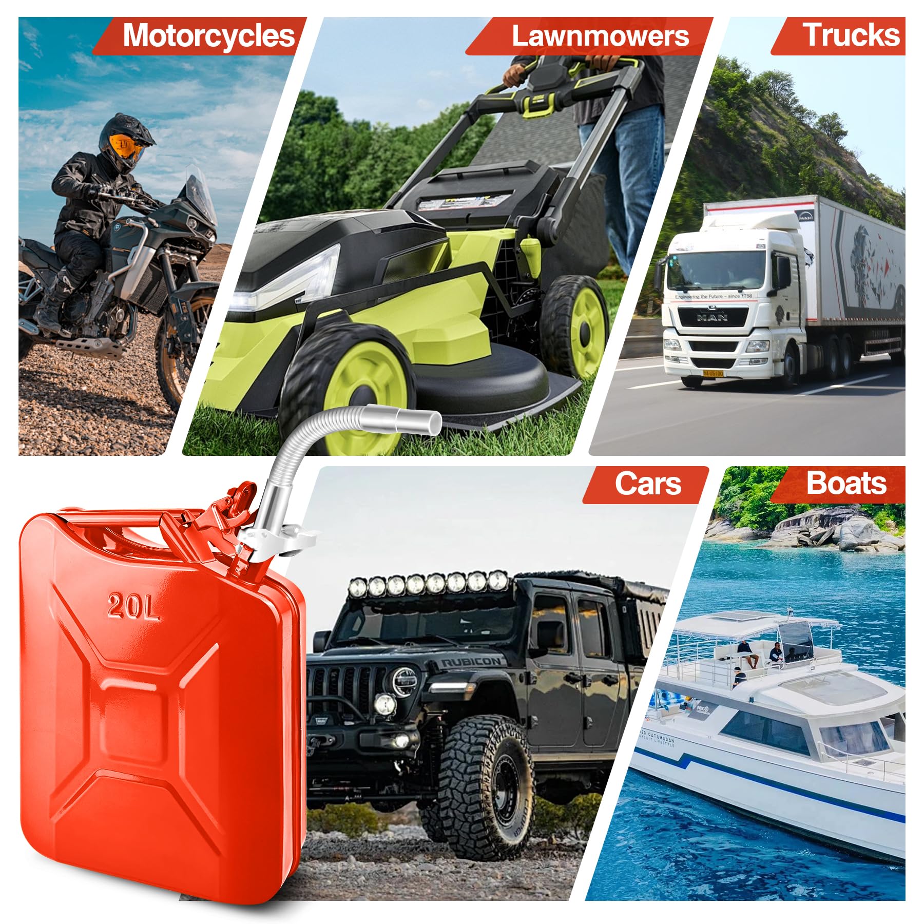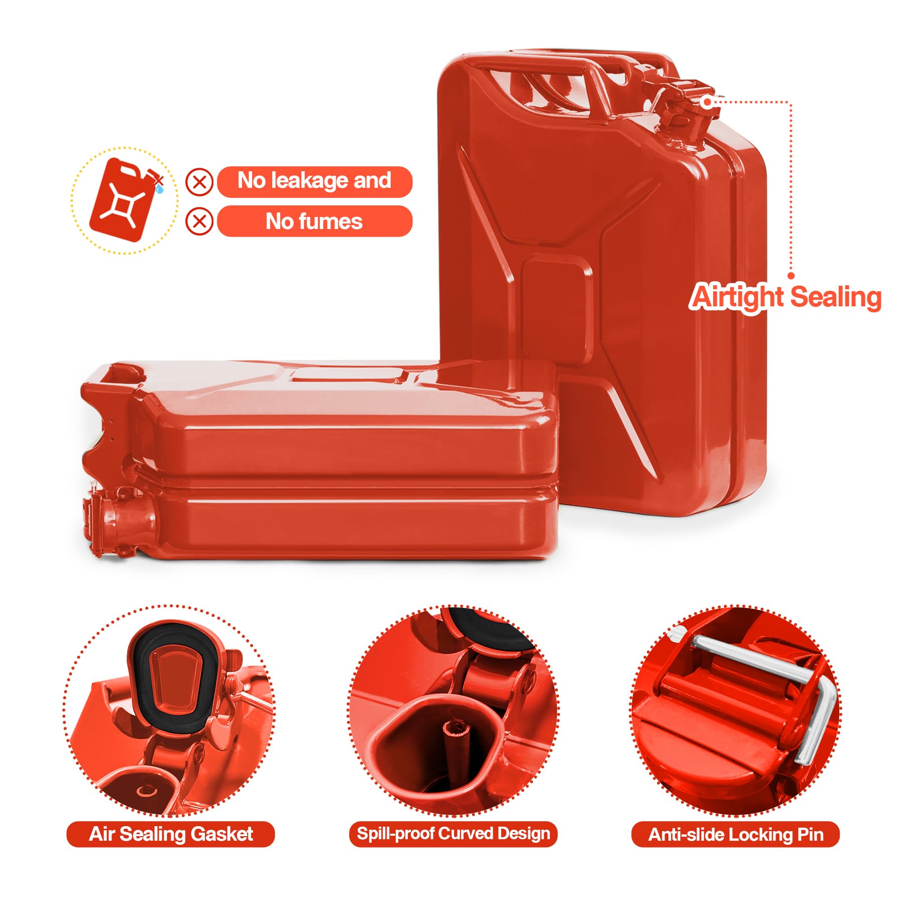 Large Capacity - 5 Gallon maximum capacity, perfect for long trips, outdoor adventures. Great for everyday shop and automotive uses, or keep on hand for emergencies