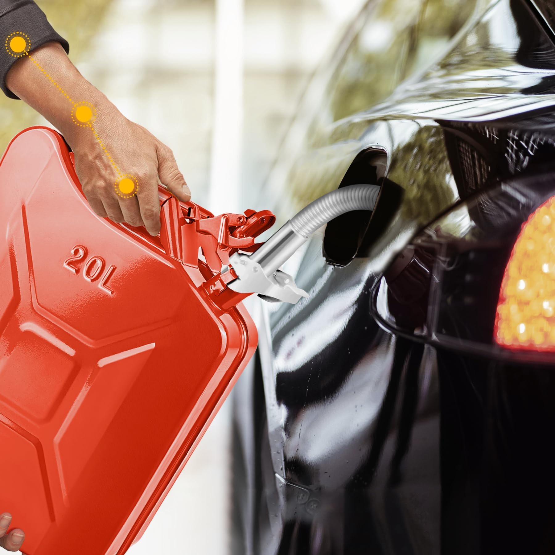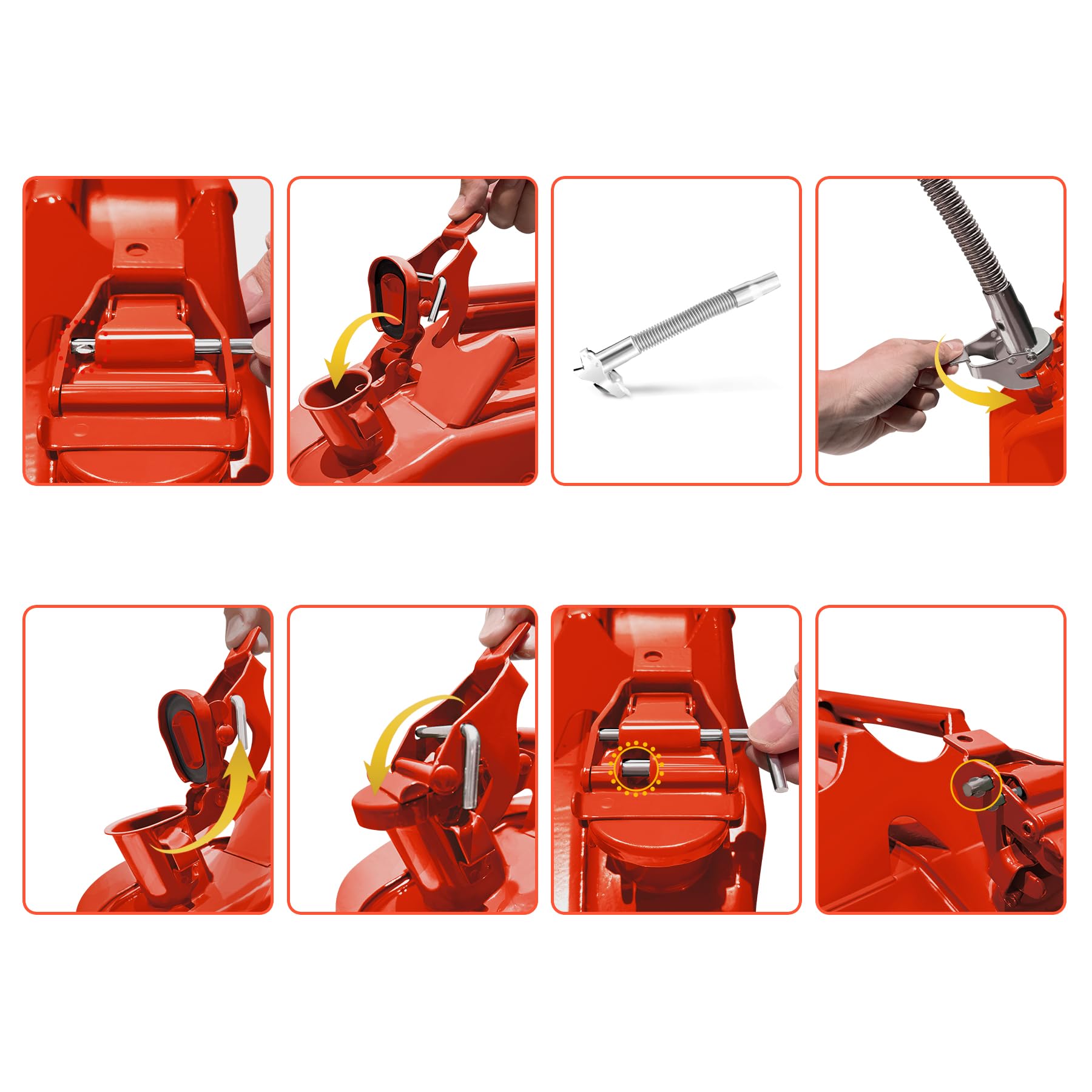 Leak-Proof Design - Equipped with a rubber sealed closure and quick-release nozzle and safety pin lock, ensuring spill-free and secure transfer