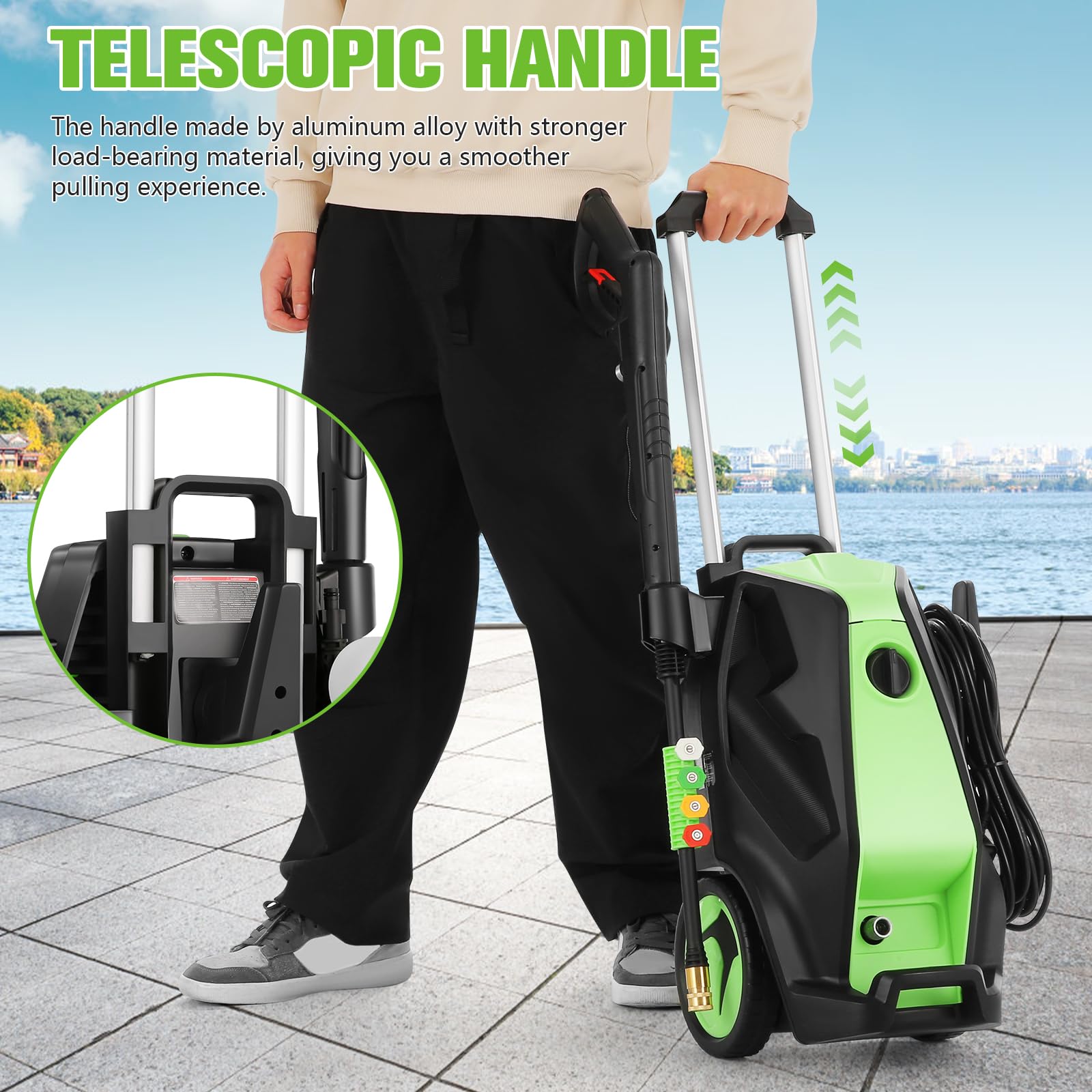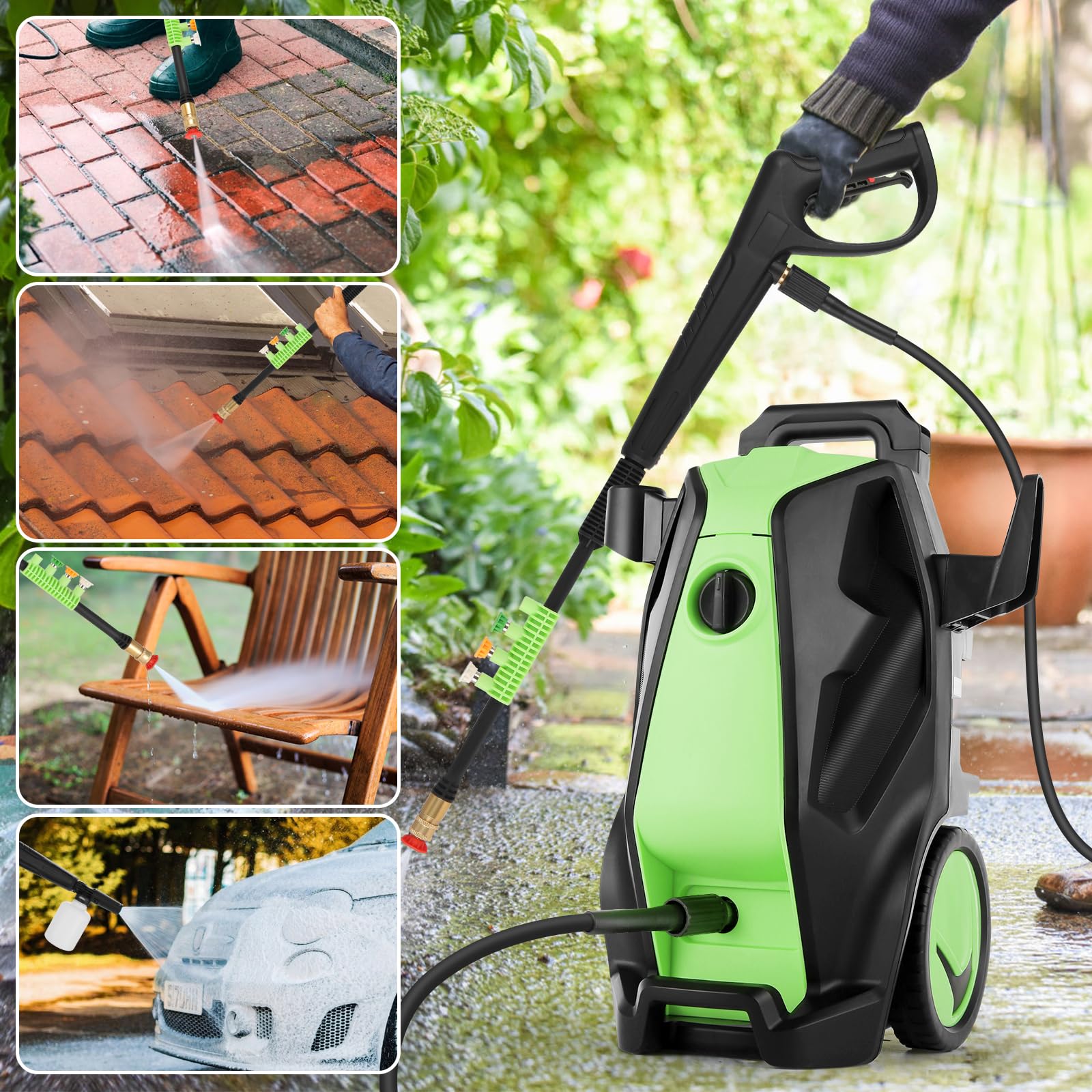 【Easy to Use】Equipped with a 33 FT Upgraded Extension pressure Cleaner hose and 20 FT power cord, which ensures easy maneuverability around your outdoor spaces without the need for constant repositioning or power source changes.
