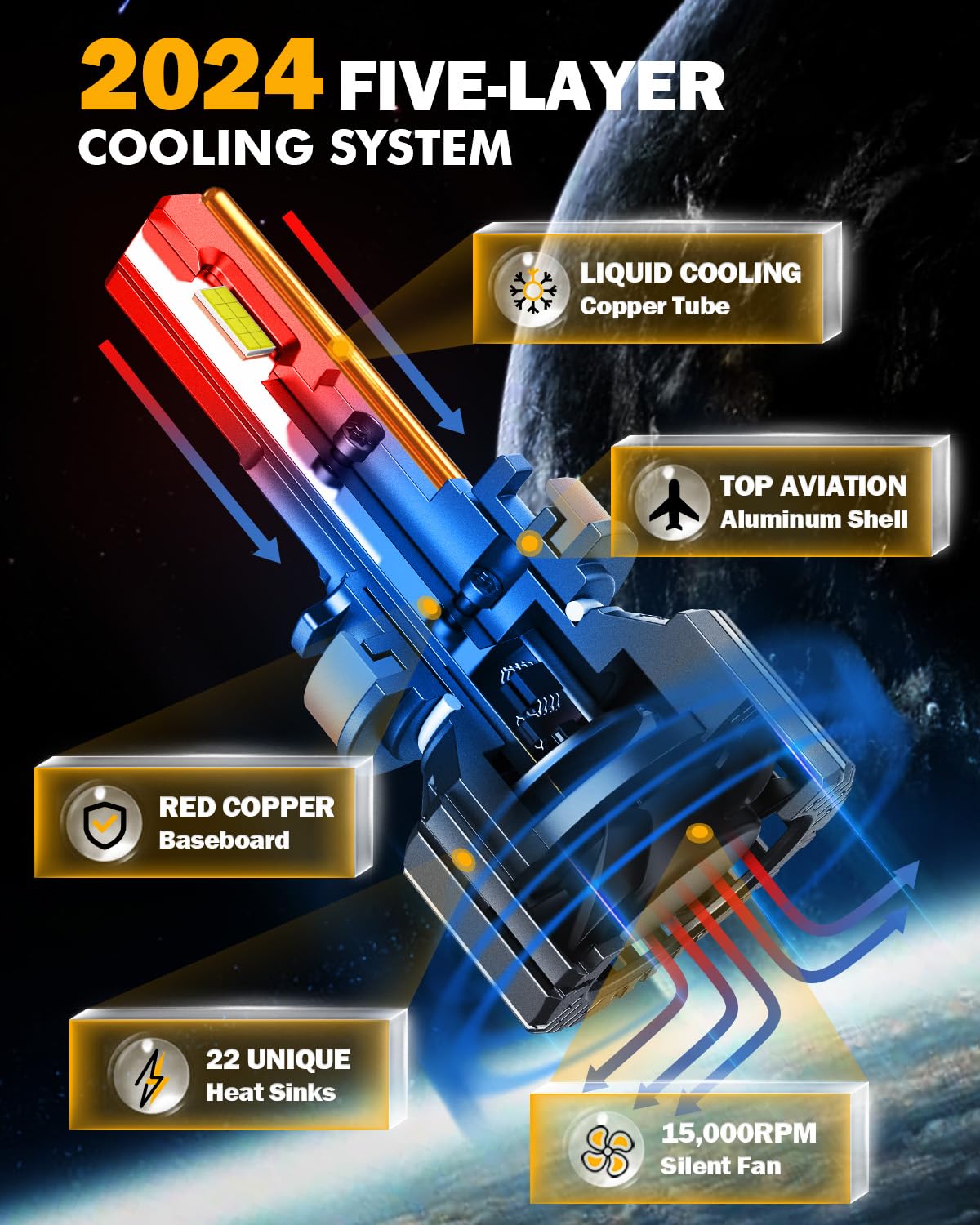 ๐ฅใ๐ฎ๐ฌ๐ฎ๐ฐ ๐๐๐ฉ๐๐ก๐๐๐ ๐๐ข๐ข๐๐๐ก๐ ๐ฆ๐ฌ๐ฆ๐ง๐๐ ใFive-layer cooling design - The red copper substrates + 6063 aviation aluminum lamp body + Unique 22PCs heat sinks + Latest liquid-cooling copper tube + 15,000RPM silent turbofan directly improves 150% heat dissipation, prolonging lifespan of h11 9005 bulbs up to 50,000 hours to avoid frequent bulb replacements.