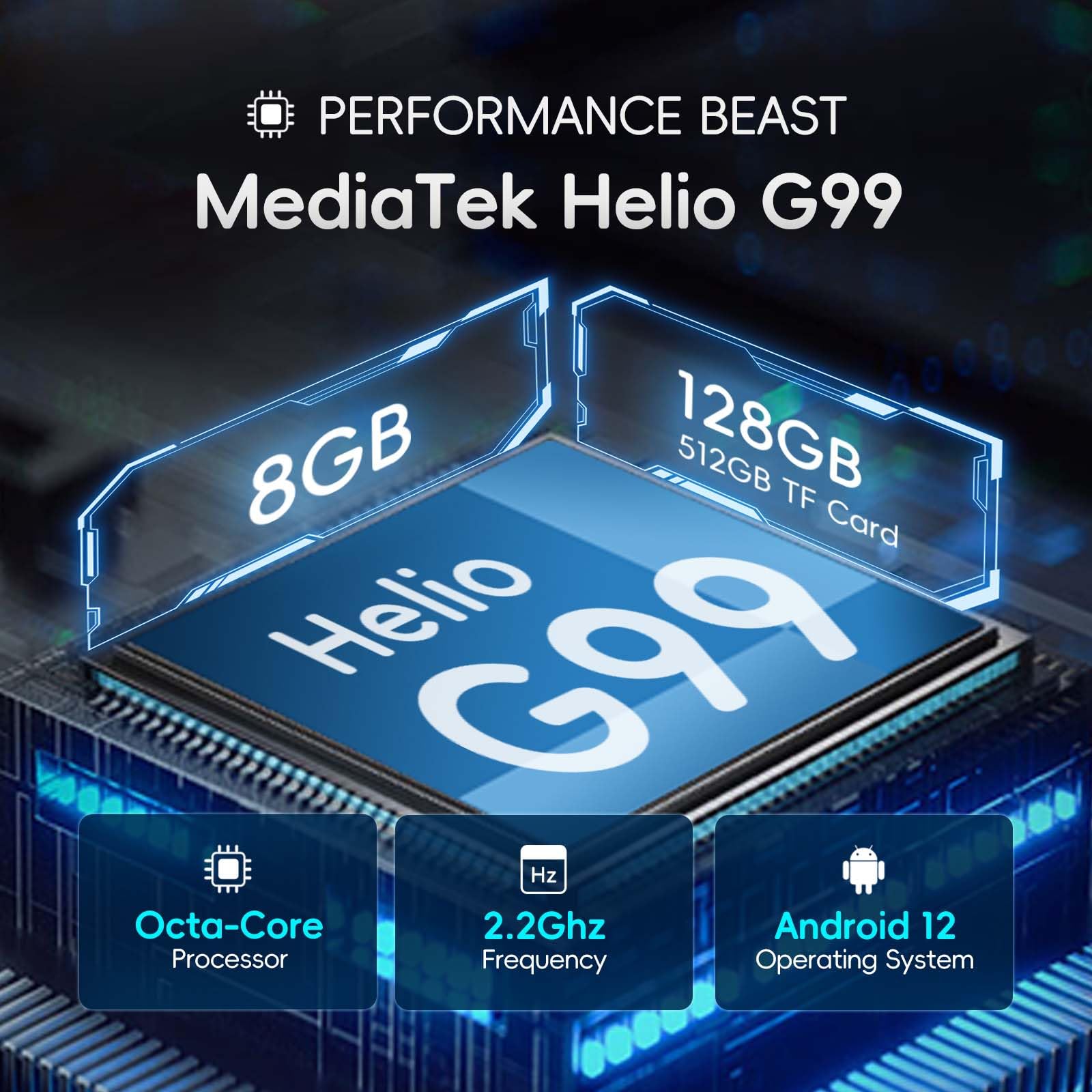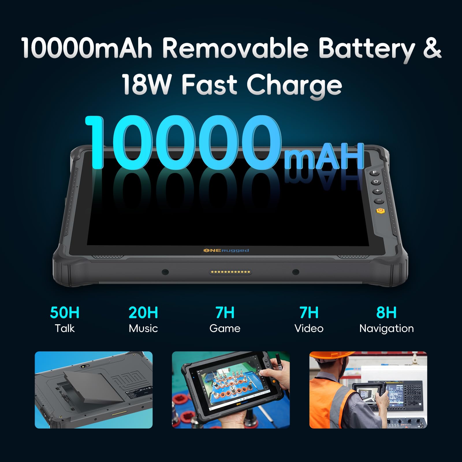 [ Octa-Core CPU, 8GB RAM+128GB ROM/512GB TF ] - The ONERugged heavy duty tablet is equipped with an upgraded Android 12 OS and adopts a 2.2GHz high-speed MTK Helio G99 Octa-core processor, delivering stable and efficient performance even while multitasking. With 8GB RAM+ 128GB ROM and 512GB TF card expandable storage space, you'll have ample space for storing documents, videos and apps and processing large software applications