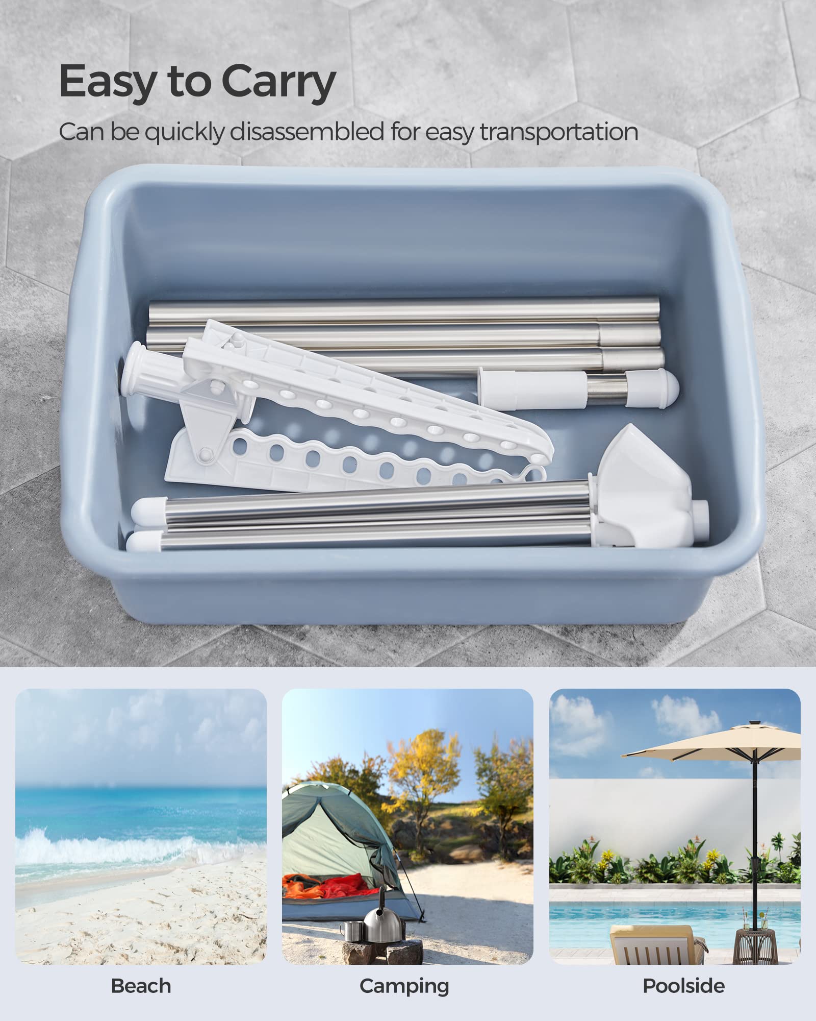 [Easy to Set Up and Carry Around] The rack comes in 7 parts, making it easy to set it up or take it down in a minute, so you can bring it with you for drying clothes when camping