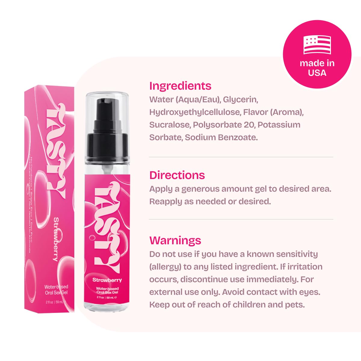 SAFE & CONSCIOUS INGREDIENTS – Made in USA. Play with peace of mind. Our specialized formula is Sugar-Free, Gluten-Free, and Vegan. We believe in clean intimacy, which is why our gel is completely Paraben-Free and contains No Artificial Dyes, ensuring a safe and non-staining experience that is gentle on your skin.