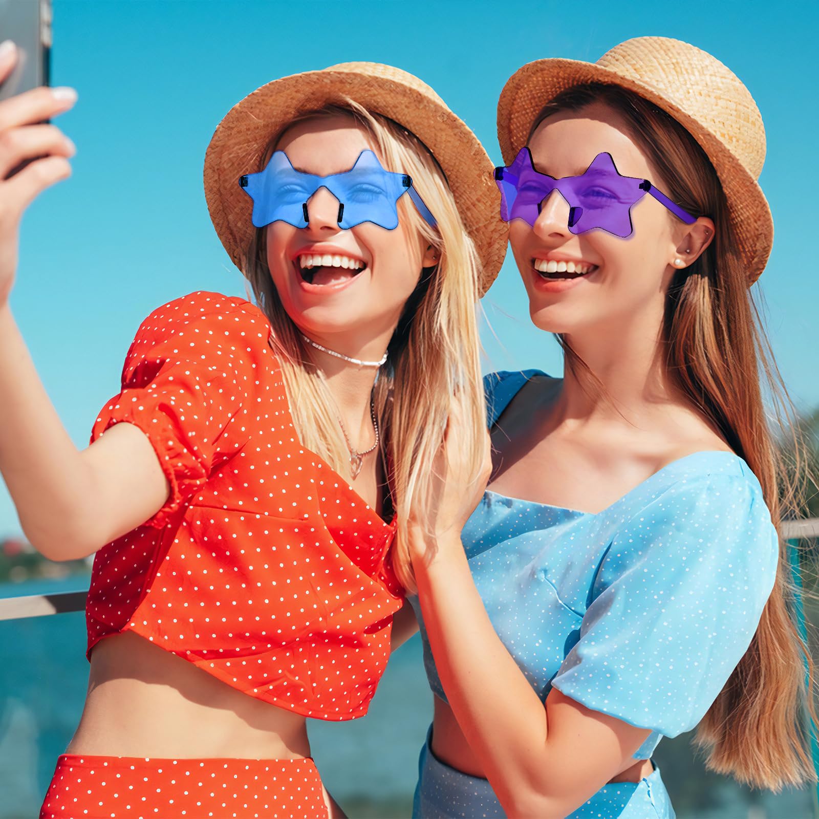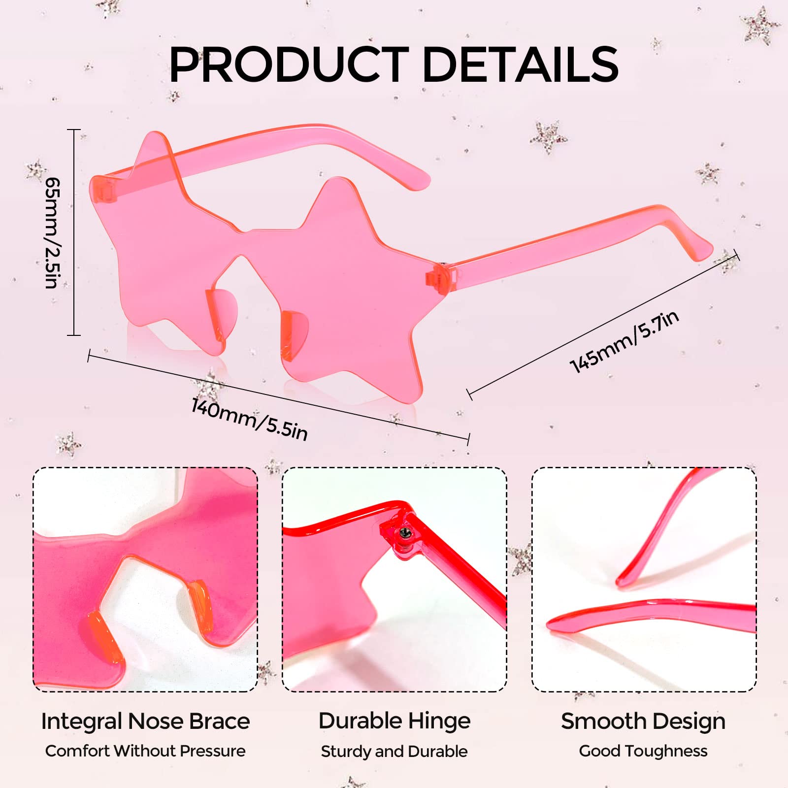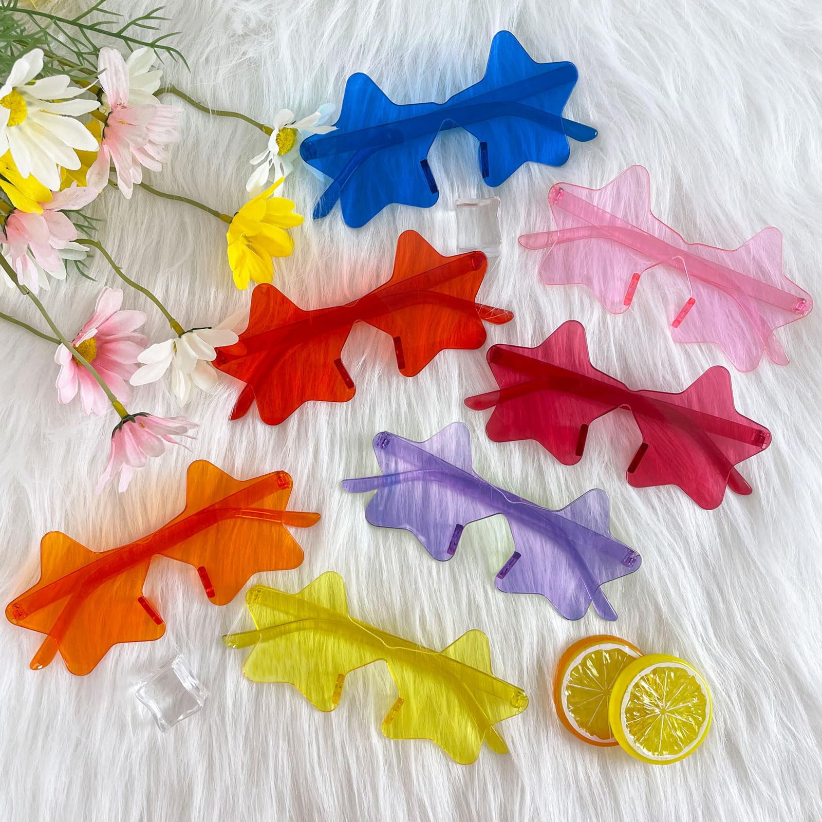 Application - Frameless sunglasses are perfect for shopping, vacations, birthday party, bachelor party and other parties. Transparent one piece star sunglasses are also a good choice for photo props and birthday gifts.